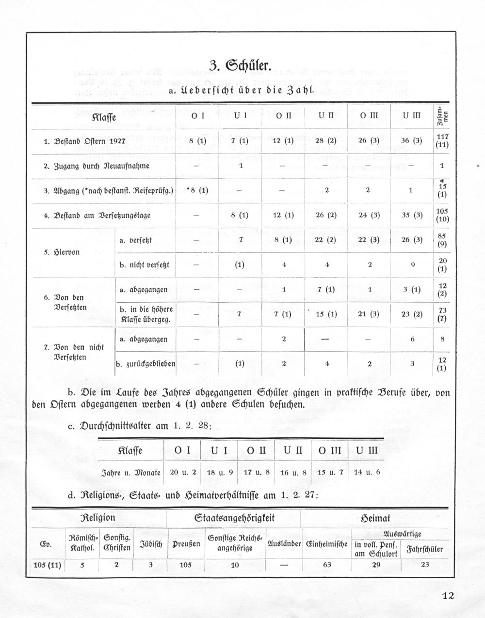b. Die im Laufe des Jahres abgegangenen Schüler gingen in praktiſche Berufe über, von den Oſtern abgegangenen werden 4(1) andere Schulen beſuchen.