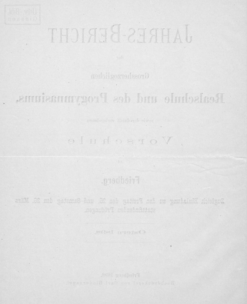 Jahresbericht der Großh. Augustinerschule (Gymnasium und Realschule) sowie der damit verbundenen Vorschulklasse zu Friedberg