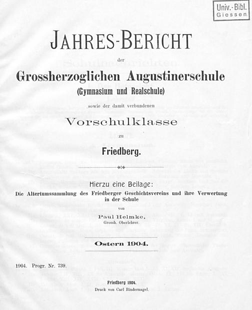 Grossherzoglichen Augustinerschule (Cymnasium und Realschule)