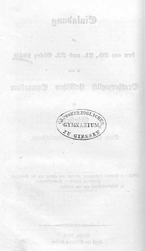 Einladung zu den am ... in dem Großherzoglich Hessischen Gymnasium zu Gießen statt findenden Schulfeierlichkeiten