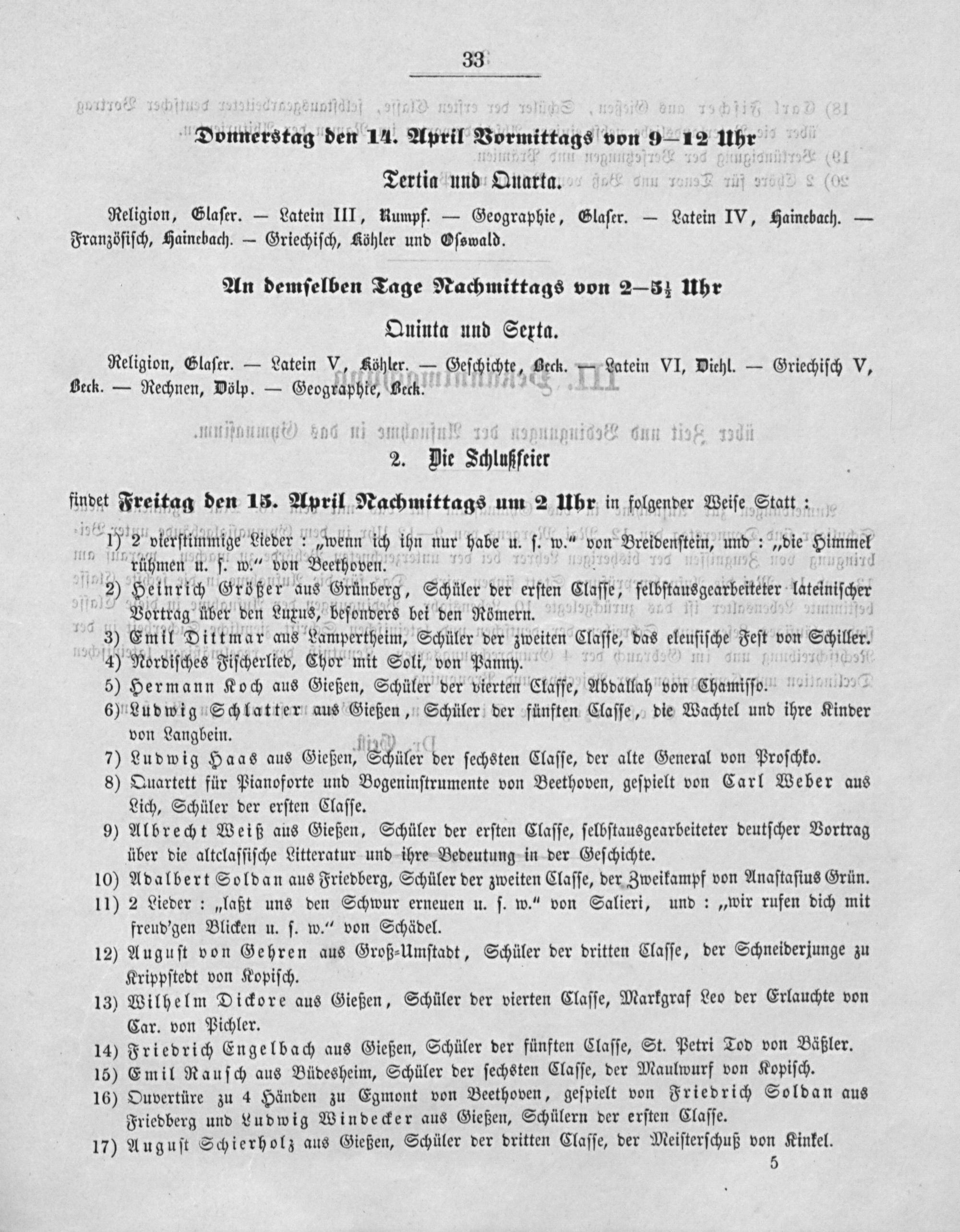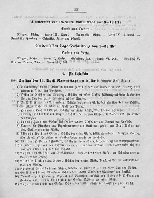 2. Die Schlußfeier ünder Freitag den 15. April Nachmittags um 2 Uhr in folgender Weiſe Statt: