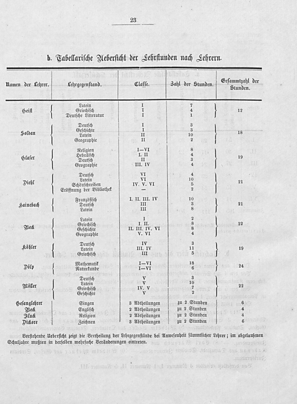 b. Tabellariſche Aeberſicht der Lehrſtunden nach Lehrern.