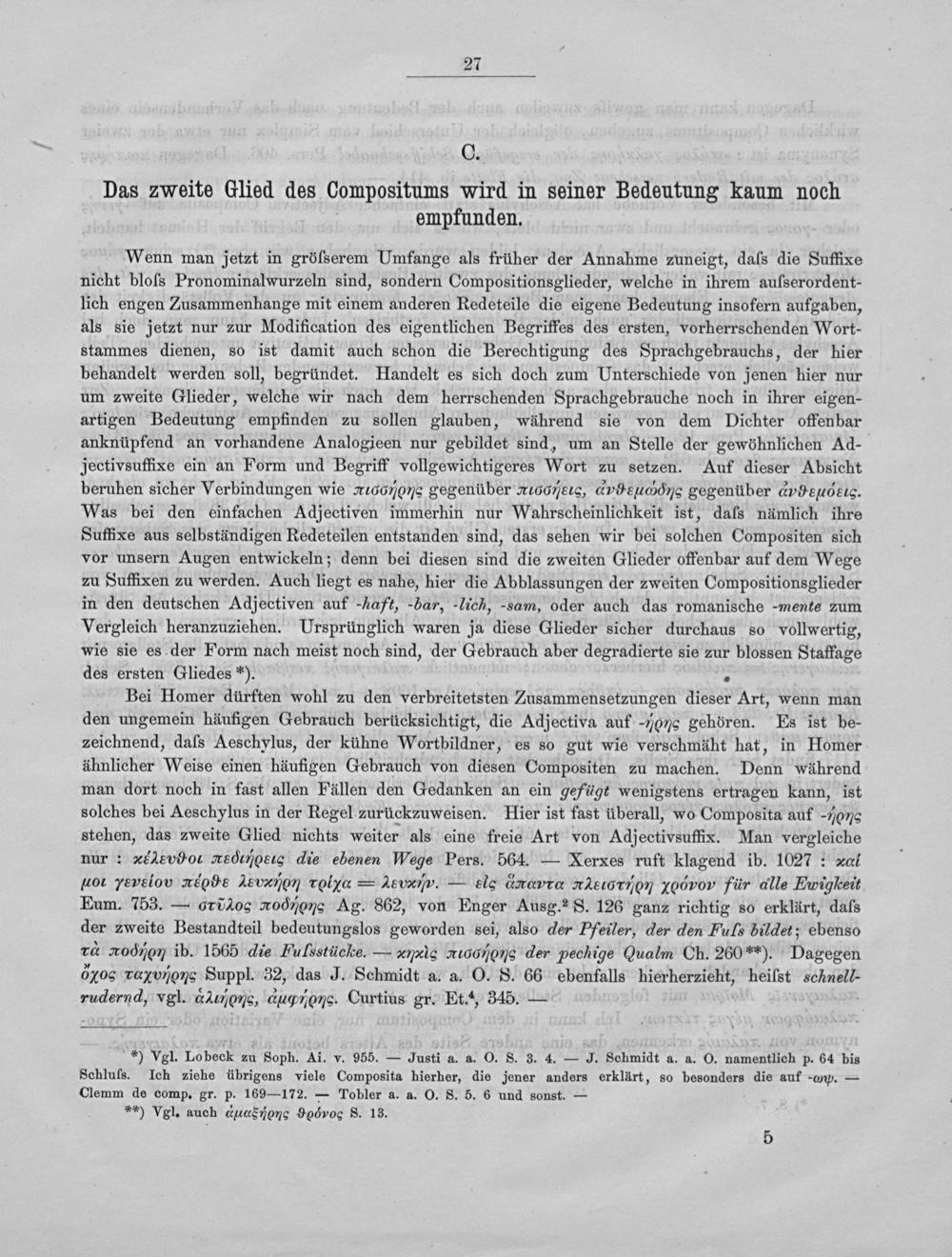*) Vgl. Lobeck zu Soph. Ai. v. 955.— Justi a. a. O. S. 3. 4.— J. Schmidt a. a. O. namentlich p. 64 bis Schluſs. Ich ziehe übrigens viele Composita hierher, die jener anders erklärt, so besonders die auf-ον.— Clemm de comp. gr. p. 169— 172.— Tobler a. a. O. S. 5. 6 und sonst.—