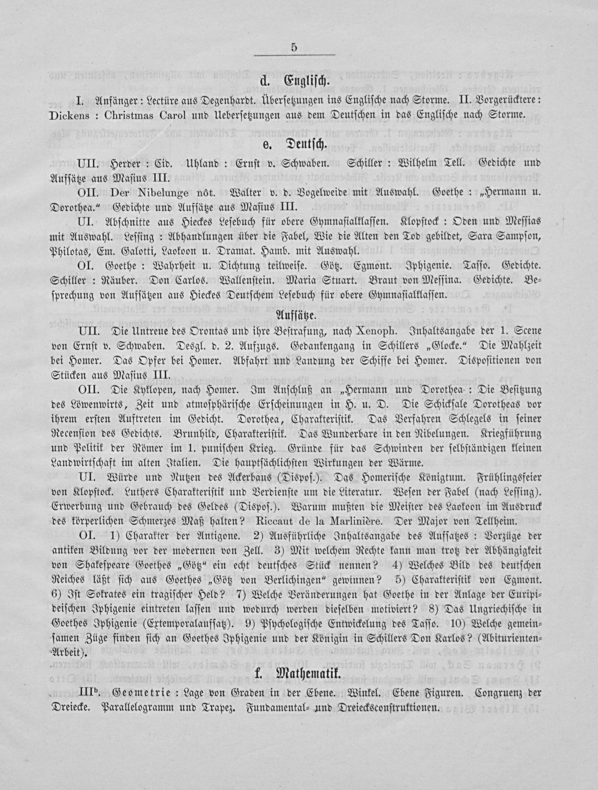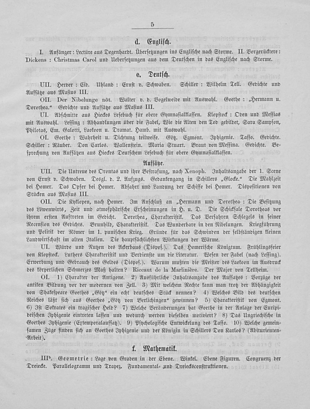 OI. Goethe: Wahrheit u. Dichtung teilweiſe. Götz. Egmont. Iphigenie. Taſſo. Gedichte. Schiller: Räuber. Don Carlos. Wallenſtein. Maria Stuart. Braut von Meſſina. Gedichte. Be⸗ ſprechung von Aufſätzen aus Hieckes Deutſchem Leſebuch für obere Gymnaſialklaſſen.