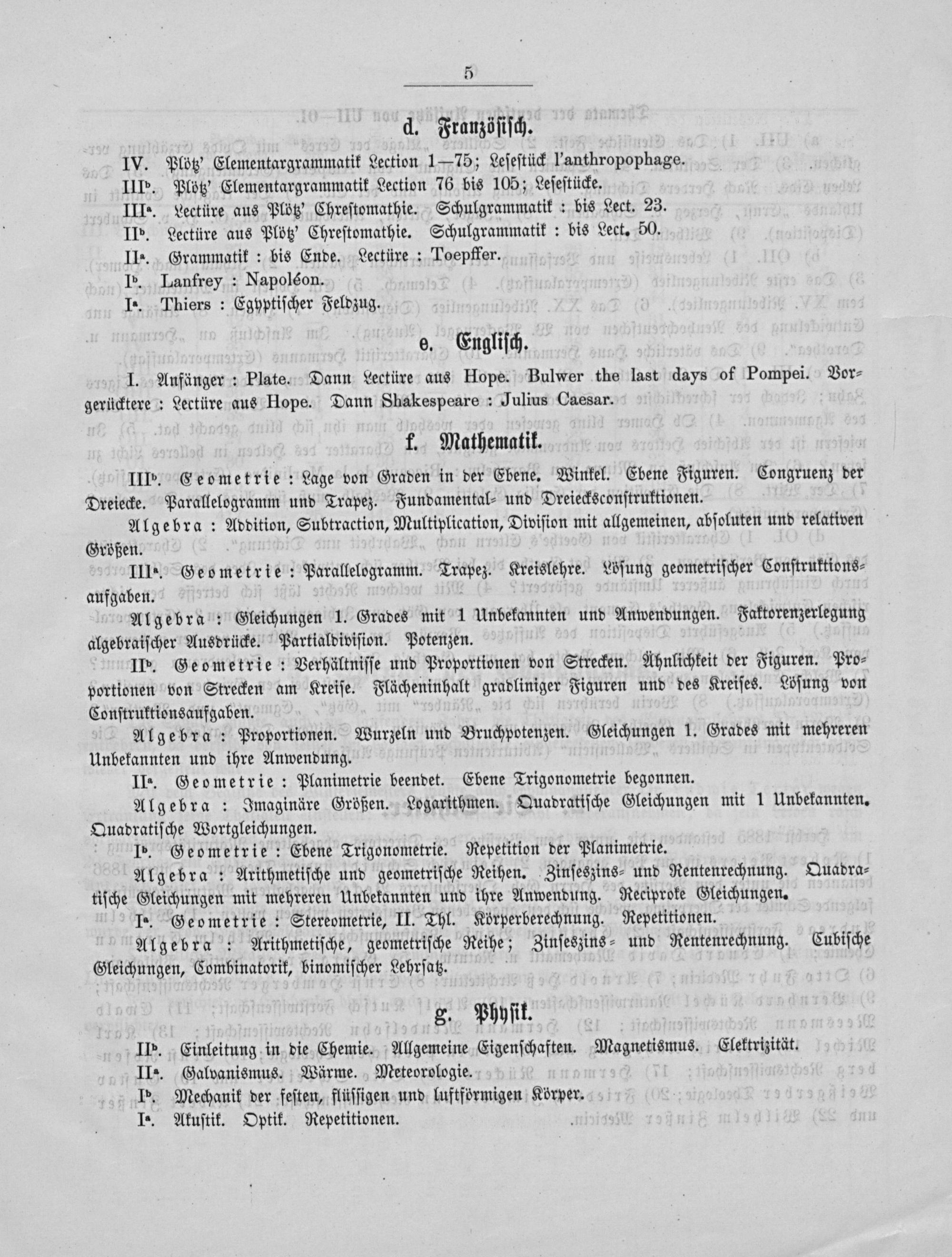 III. Lectüre aus Plötz’ Chreſtomathie. Schulgrammatik: bis Lect. 23. IIv. Lectüre aus Plötz' Chreſtomathie. Schulgrammatik: bis Lect. 50. II. Grammatik: bis Ende. Lectüre: Toepffer.