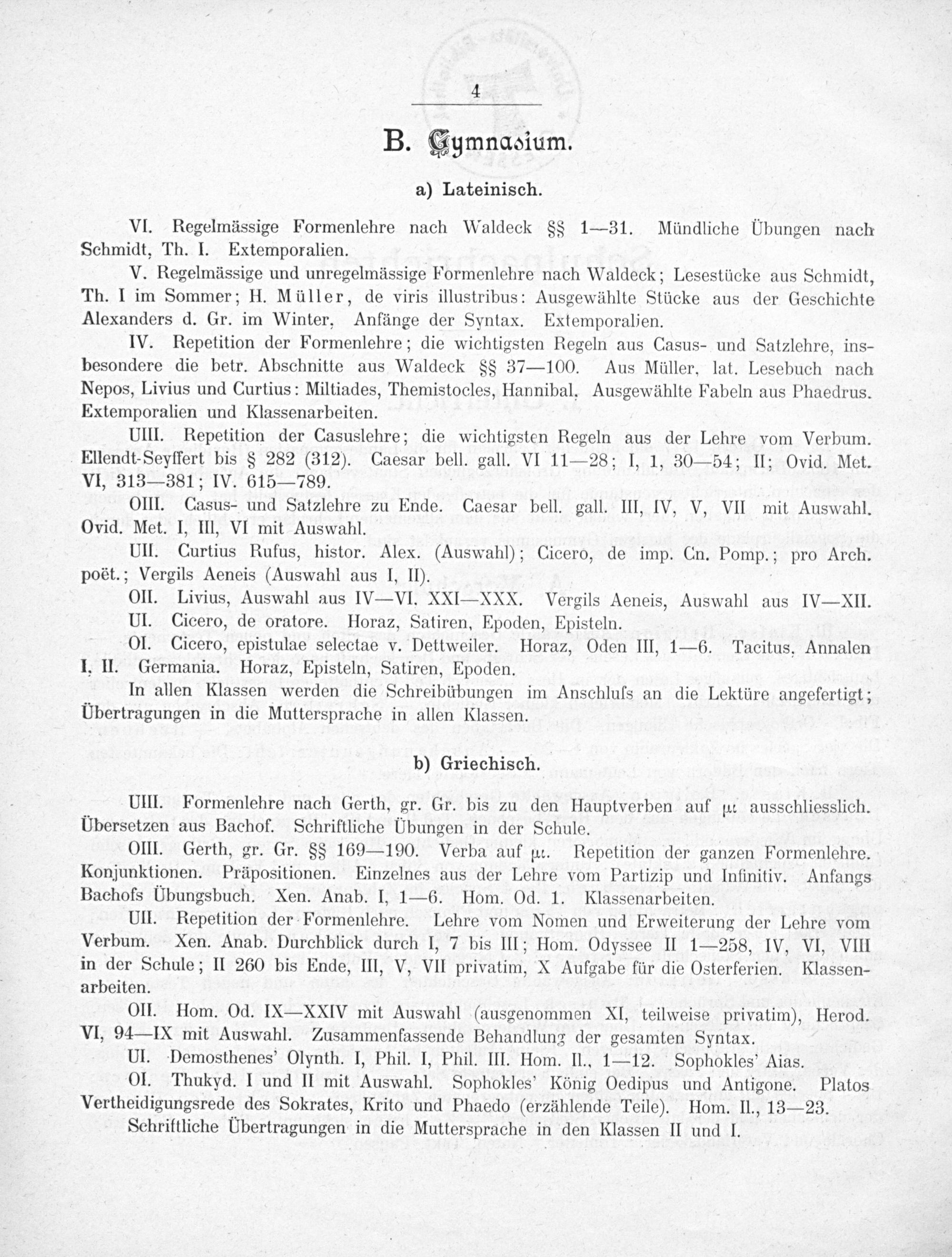 B. Gumnaoium. a) Lateinisch.