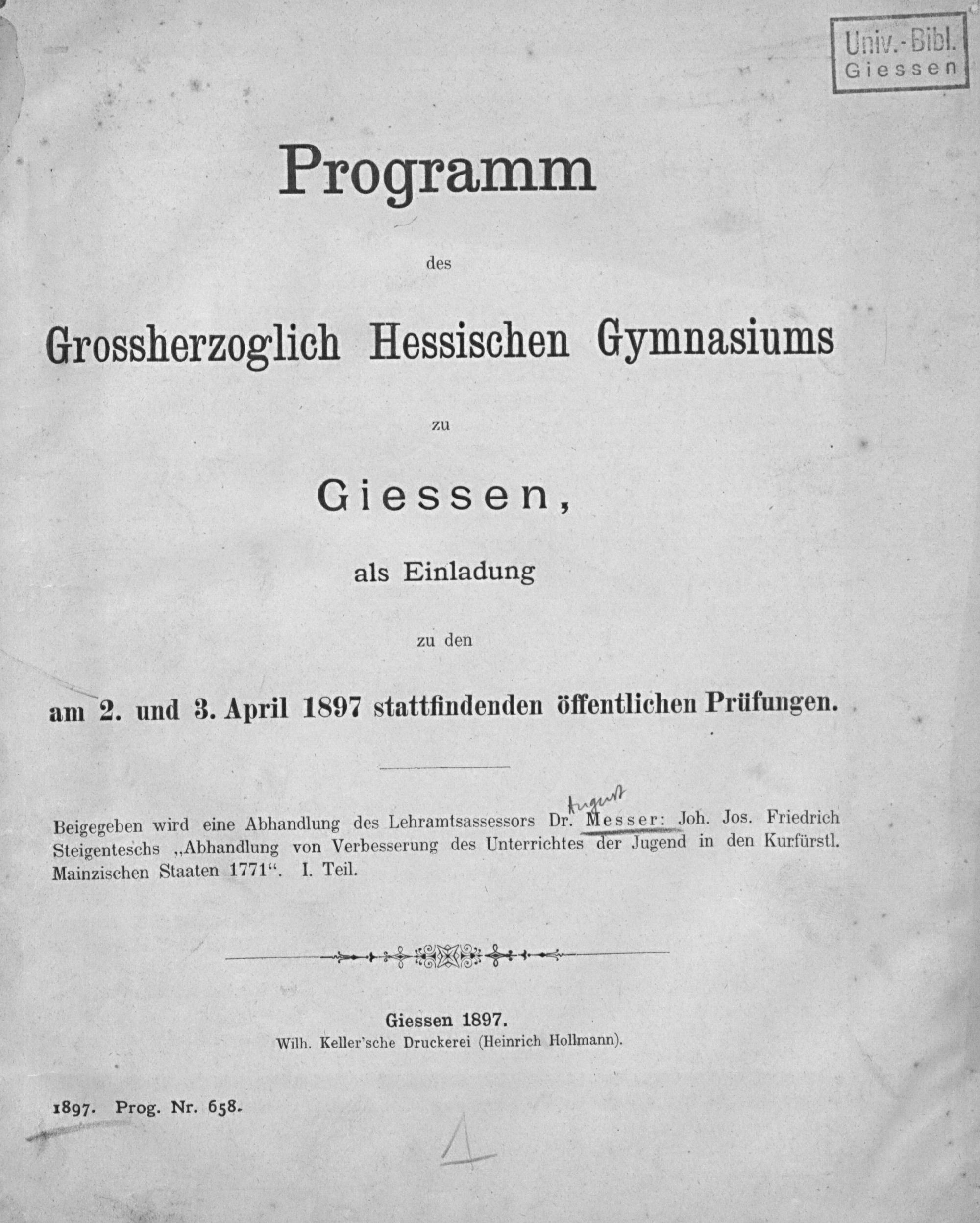 Giessen 1897. Wilh. Keller'sche Druckerei(Heinrich Hollmann).