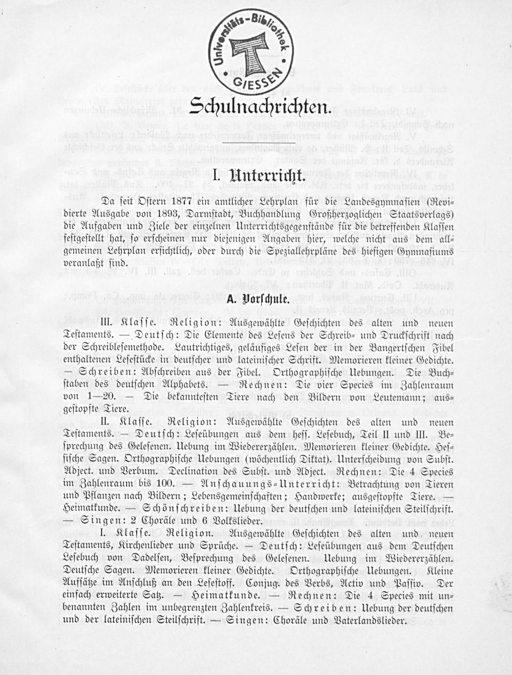 I. Unterricht.
