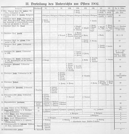 III. Verteilung des Unterrichts um Pſtern 1902.