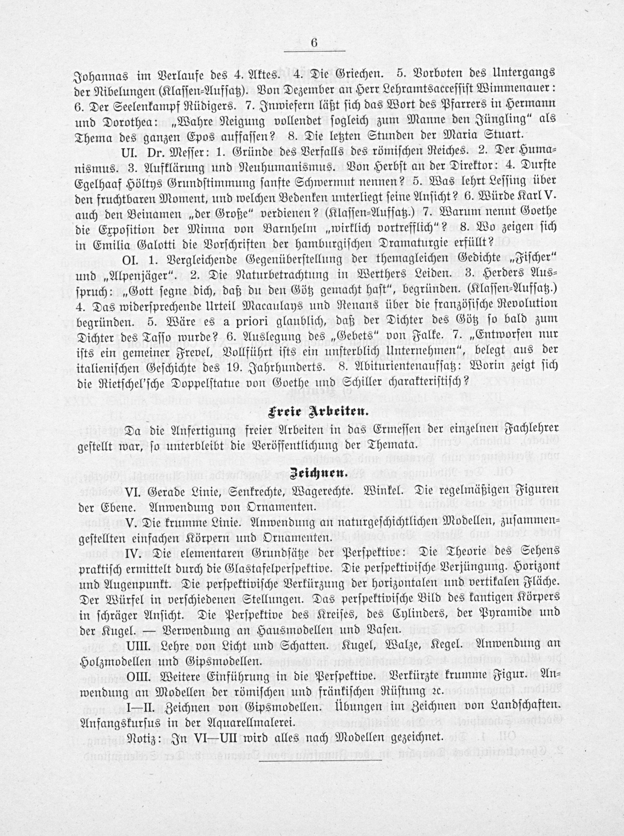 Da die Anfertigung freier Arbeiten in das Ermeſſen der einzelnen Fachlehrer geſtellt war, ſo unterbleibt die Veröffentlichung der Themata.