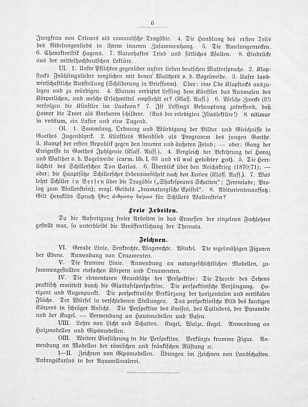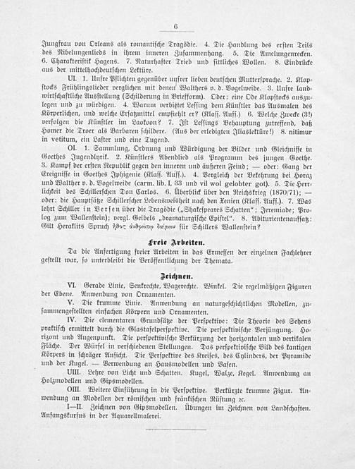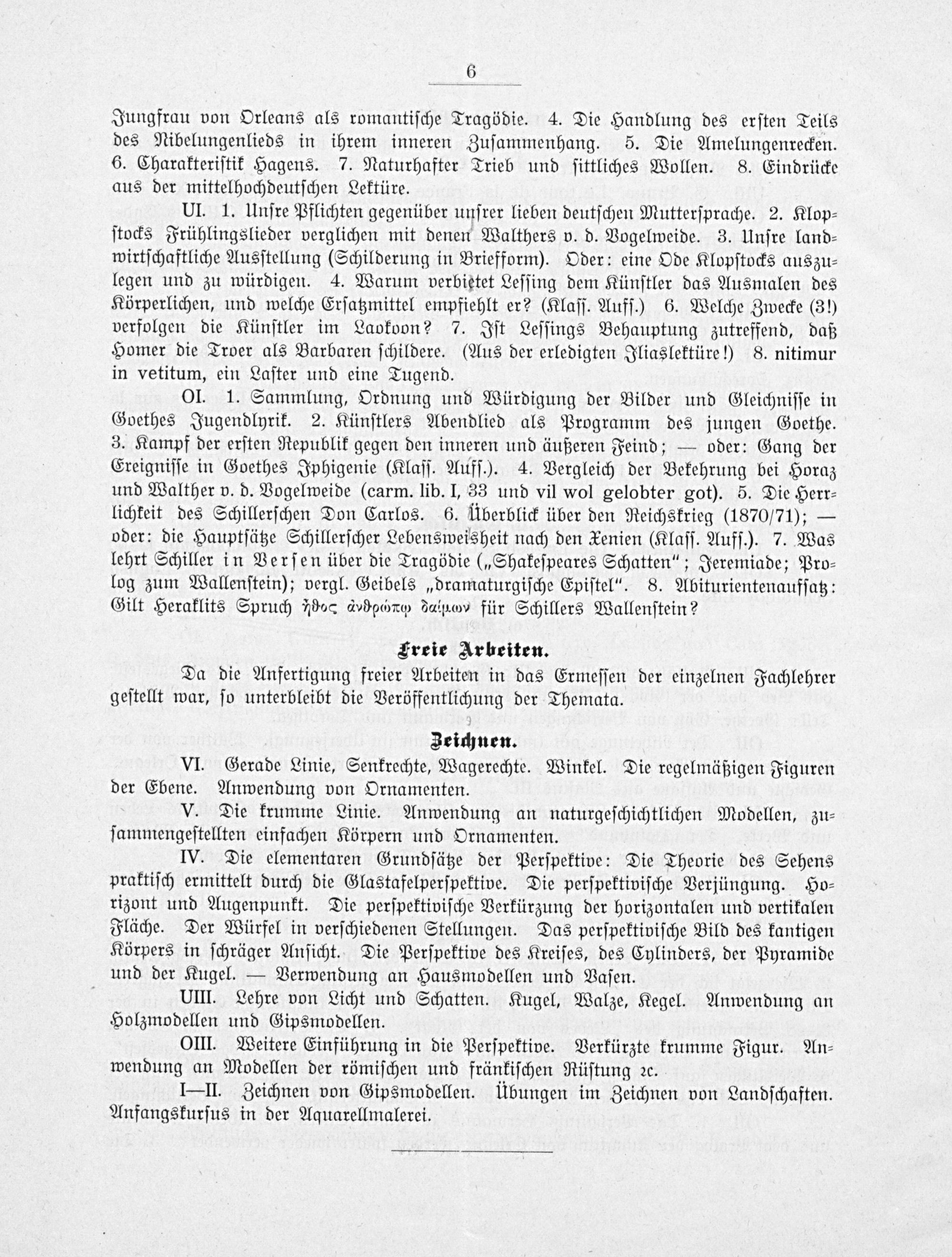 Freie Arbeiten. Da die Anfertigung freier Arbeiten in das Ermeſſen der einzelnen Fachlehrer geſtellt war, ſo unterbleibt die Veröffentlichung der Themata.
