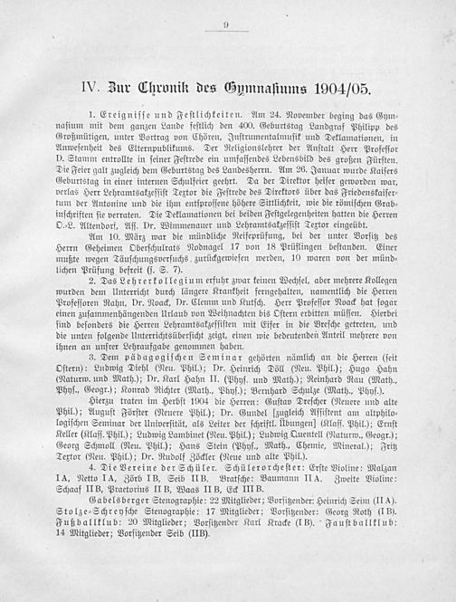 IV. Zur Chronik des Gymnaſiums 1904/05.