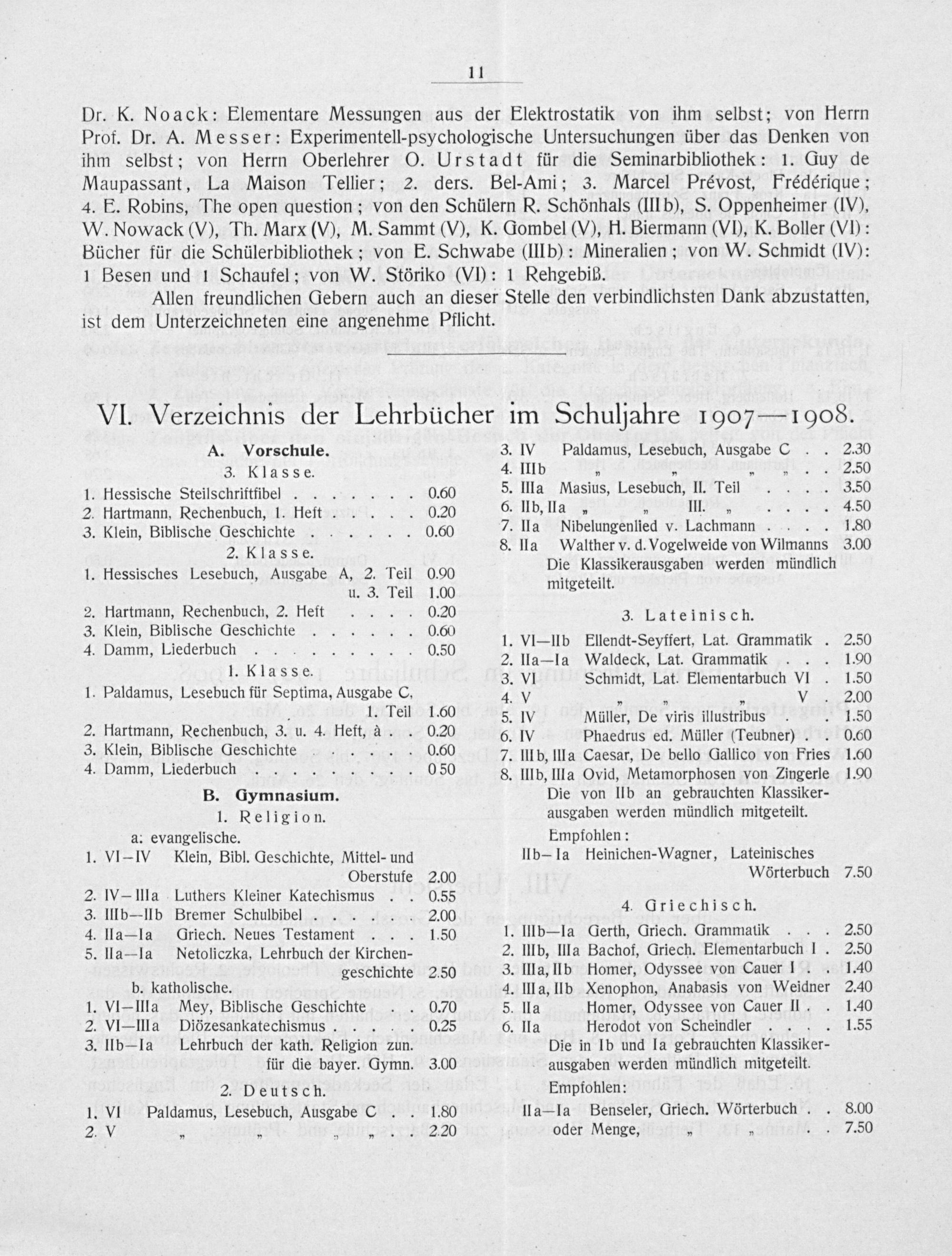 VI. Verzeichnis der Lehrbücher im Schuljahre 1907— 1008.