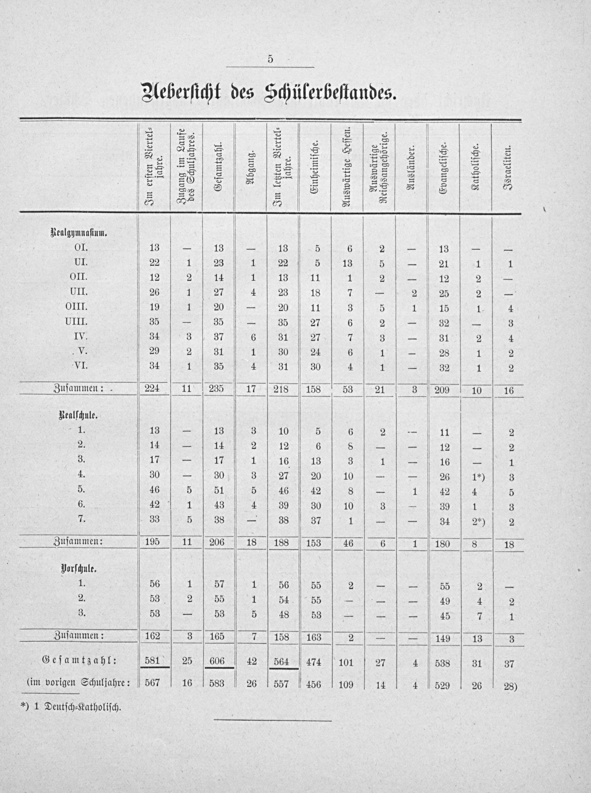 Zuſammen: Geſamtzahl (im vorigen Schuljahre