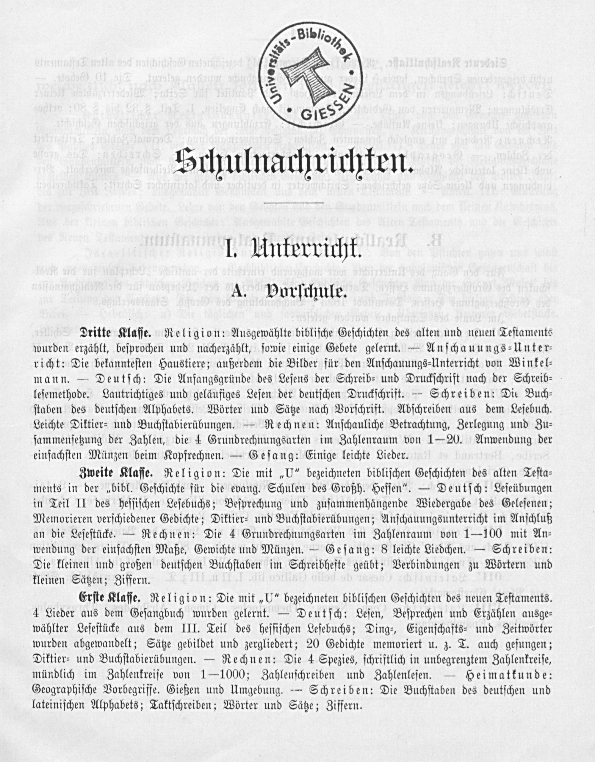 I. Unkexricht. A. Vorſchule.