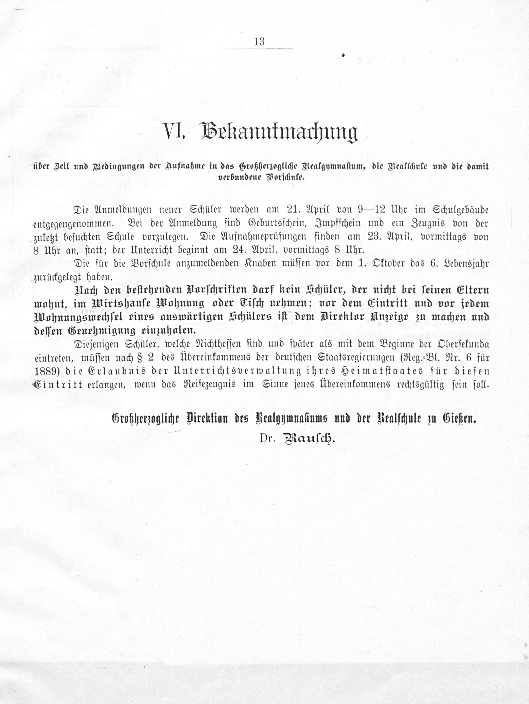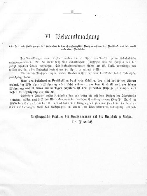 Großherzogliche Direktion des Realgymnaſiums und der Realſchule zu Gießen. * Dr. Rauſch.