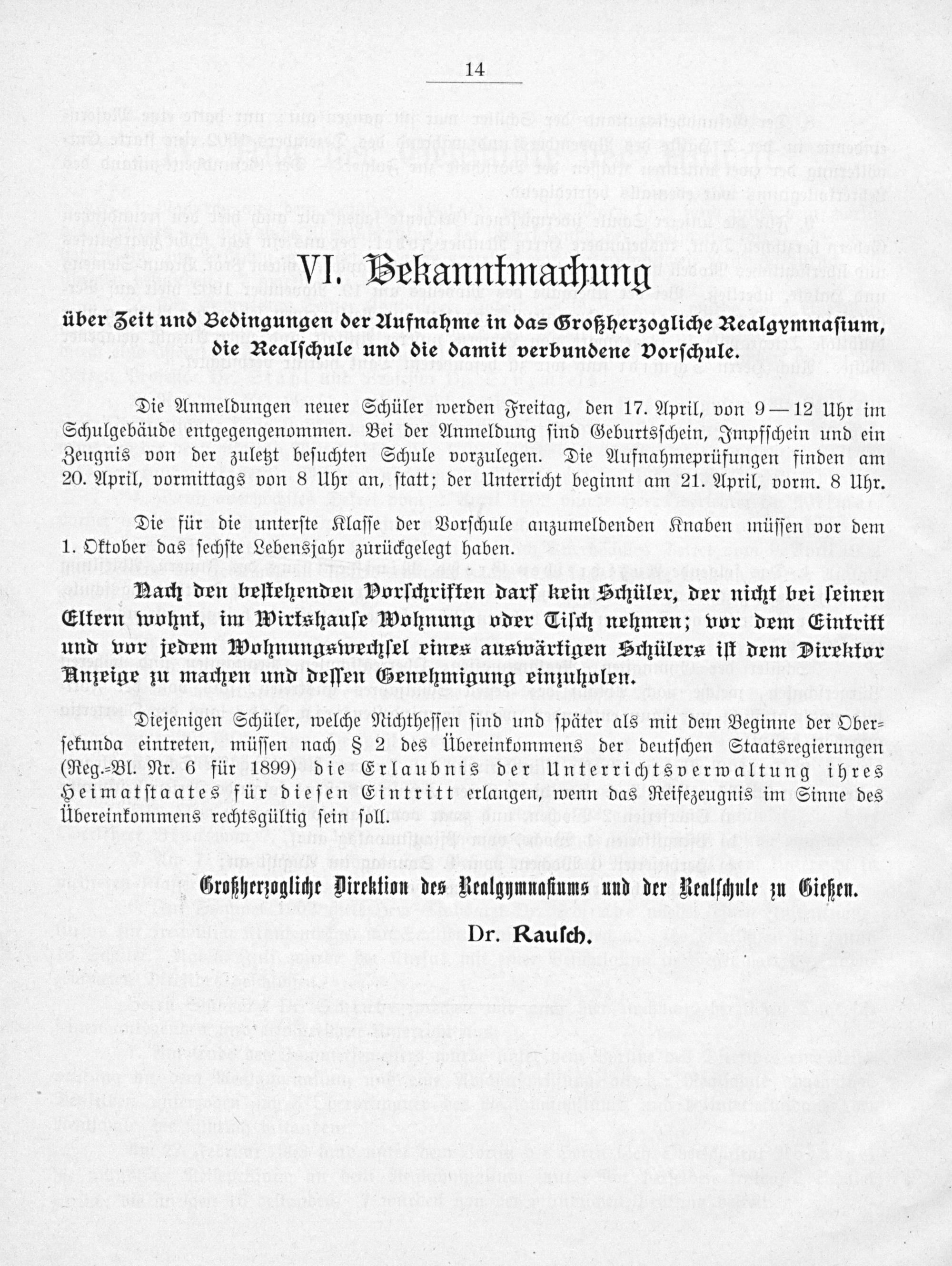 Großherzogliche Direktion des Realgumnaſiums und der Realſchule zu Gießen. Dr. Rauſch.