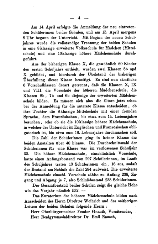 Das Kuratorium der höheren Mädchenschule bilden nach Ausscheiden des Herrn Direktor Weihrich und des seitherigen Leiters der beiden Schulen folgende Herrn: