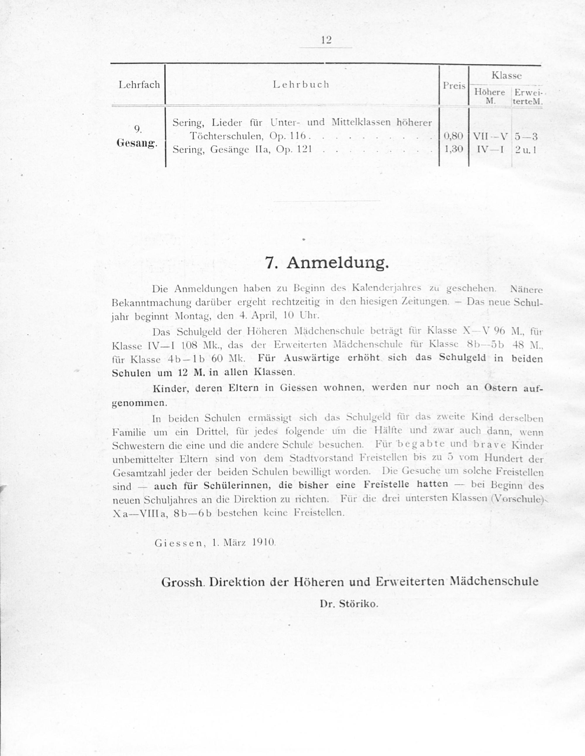 Die Anmeldungen haben zu Beginn des Kalenderjahres zu geschehen. Nänere Bekanntmachung darüber ergeht rechtzeitig in den hiesigen Zeitungen.— Das neue Schul-