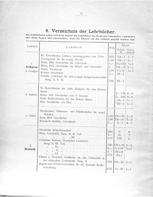 X- VIII 8—6 Kath. Kathechismus für das Bistum Mainz VIIOI 5—1 Bibl. Geschichte von Mey VII—I 5—1 Herxheimer, Glaubens- und Pflichtenlehre für israel.
