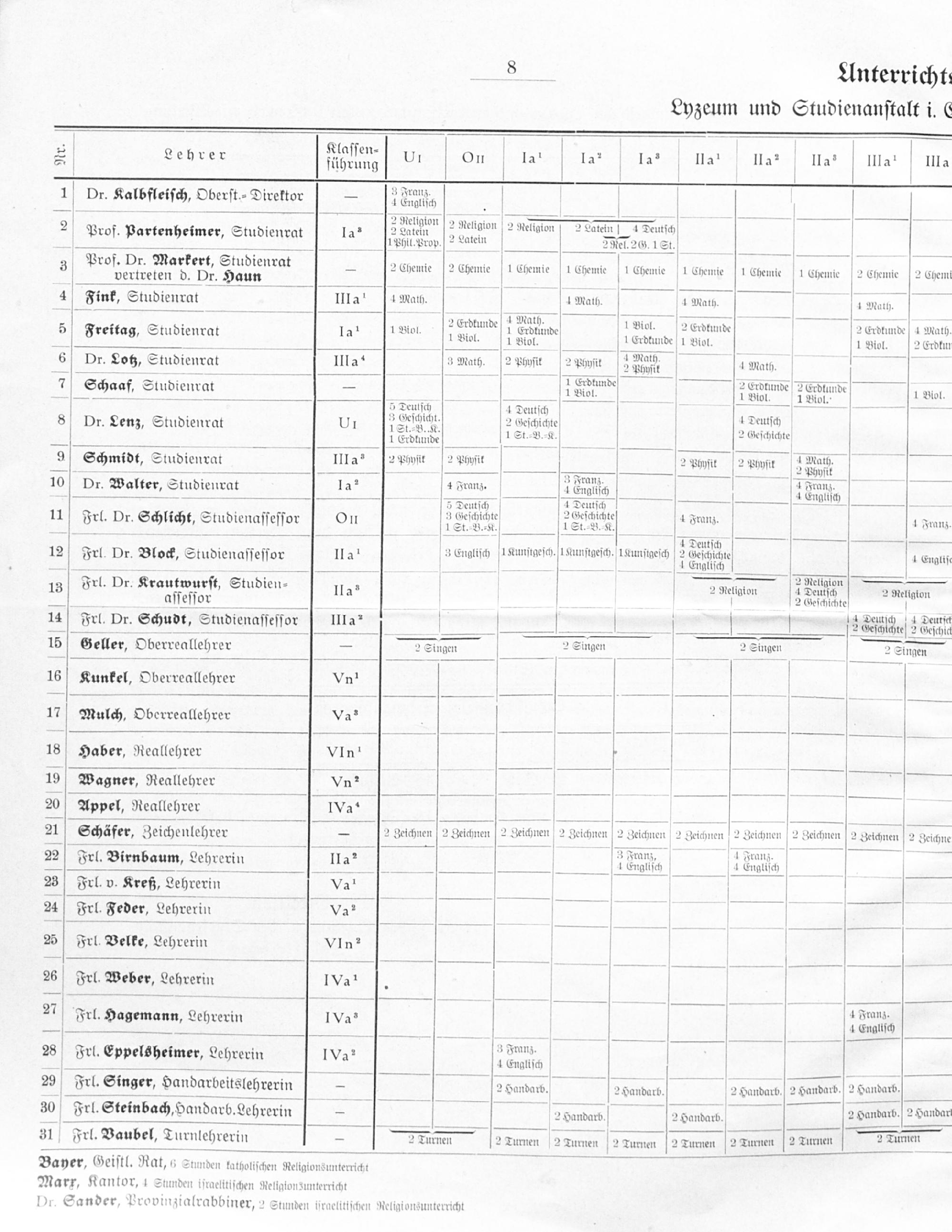2 ar ci 1 4 1 Deutſch 12 Frl. Dr. Block, Studienaſſeſſor Ila¹ 3 Engliſch us Kunſtgeſch. 1Kunſtgeſch. 1Kunſigeſch Ern 4 Engüſſe