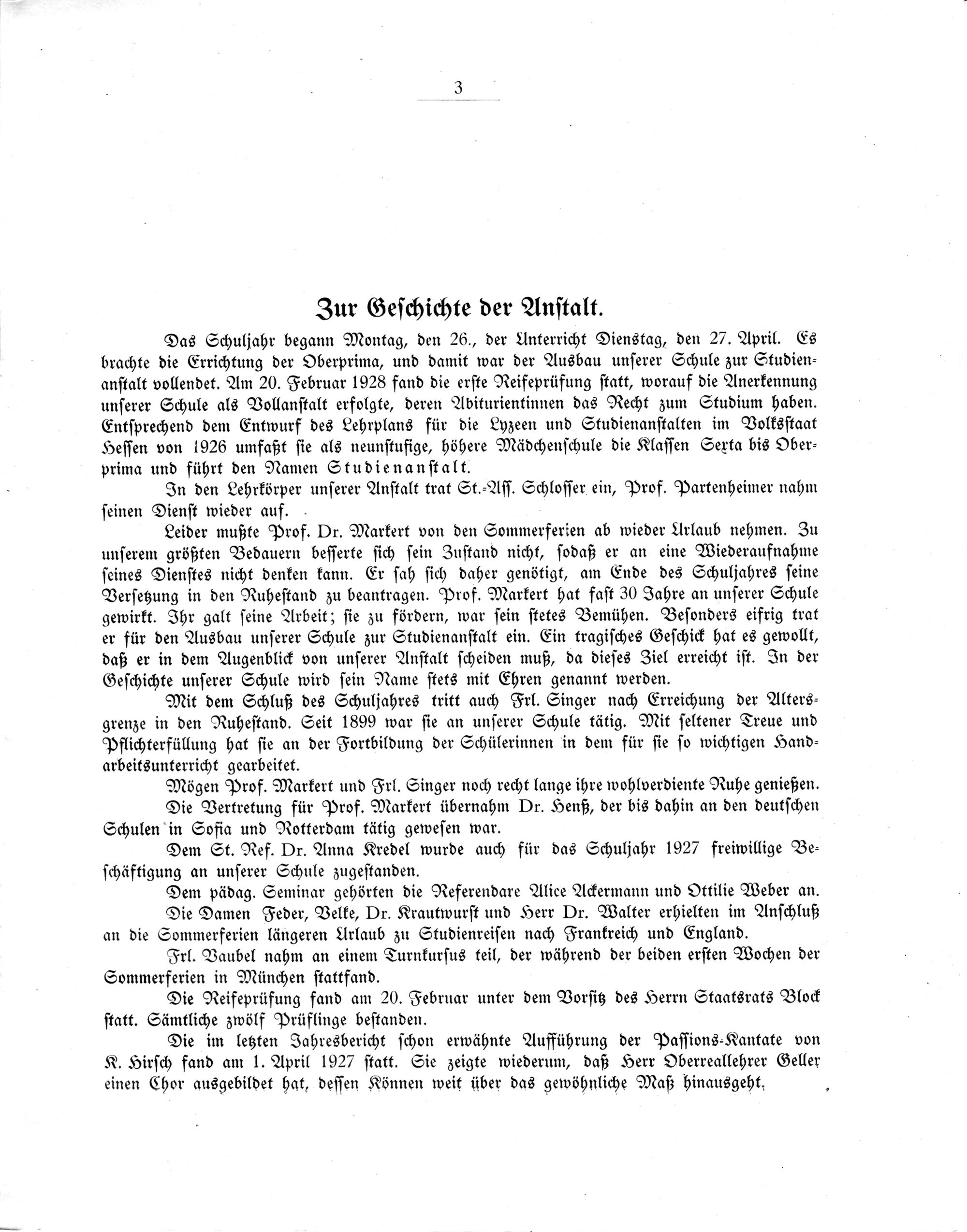 Dem St. Ref. Dr. Anna Kredel wurde auch für das Schuljahr 1927 freiwillige Be⸗ ſchäftigung an unſerer Schule zugeſtanden.
