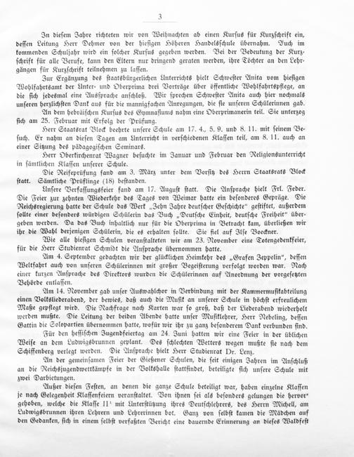 Am 4. September gedachten wir der glücklichen Heimkehr des„Grafen Zeppelin“, deſſen Weltfahrt auch von unſeren Schülerinnen mit großer Begeiſterung verfolgt worden war. Nach einer kurzen Anſprache des Direktors wurden die Schülerinnen auf Anordnung der vorgeſetzten Behörde entlaſſen.