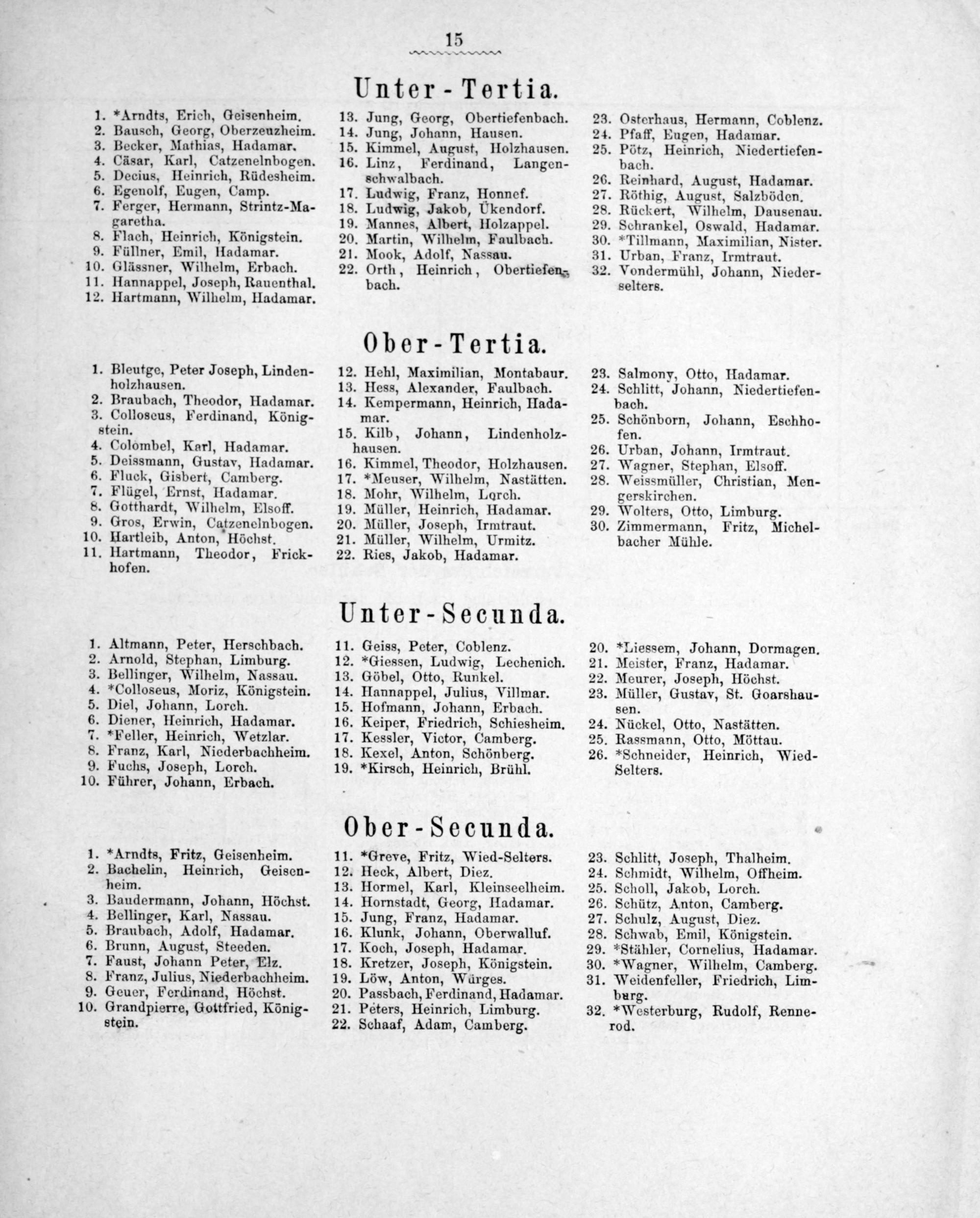 Altmann, Peter, Herschbach. Arnold, Stephan, Limburg. . Bellinger, Wilhelm, Nassau. .*Colloseus, Moriz, Königstein.