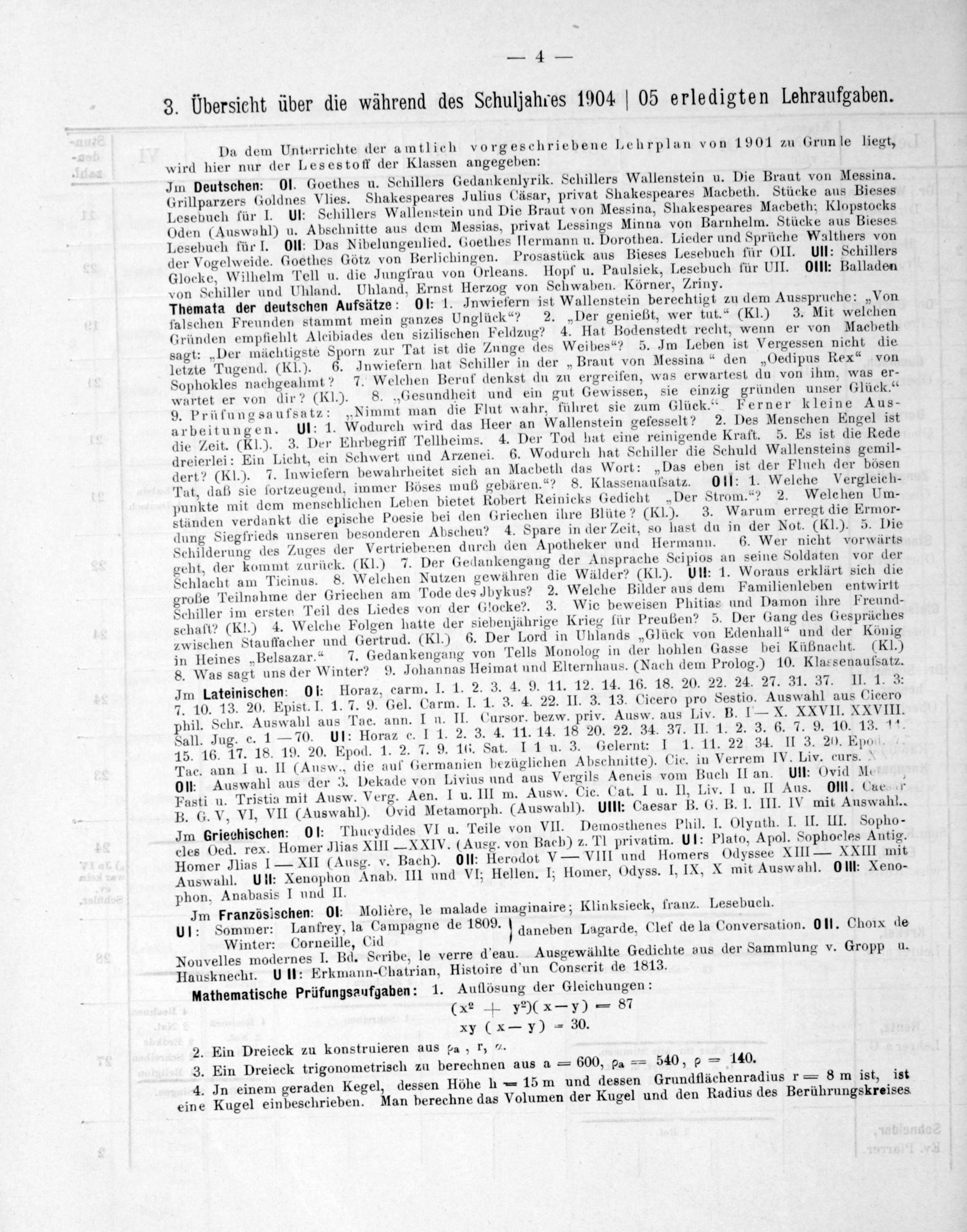 — 4— 3. Obersieht über die während des Schuljahres 1904]05 erledigten Lehraufgaben.