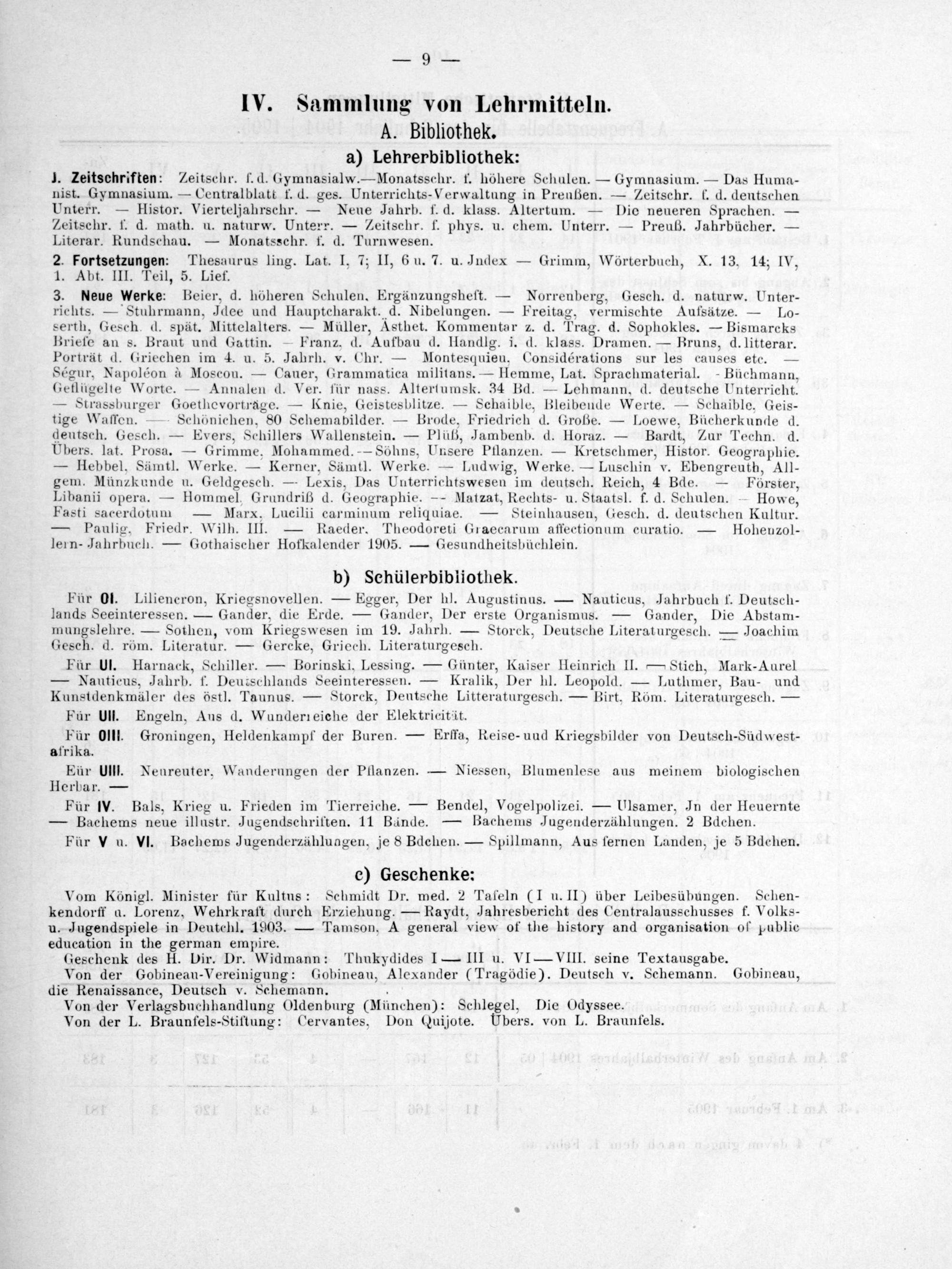 IV. Sammlung von Lehrmitteln. A. Bibliothek. a) Lehrerbibliothek: