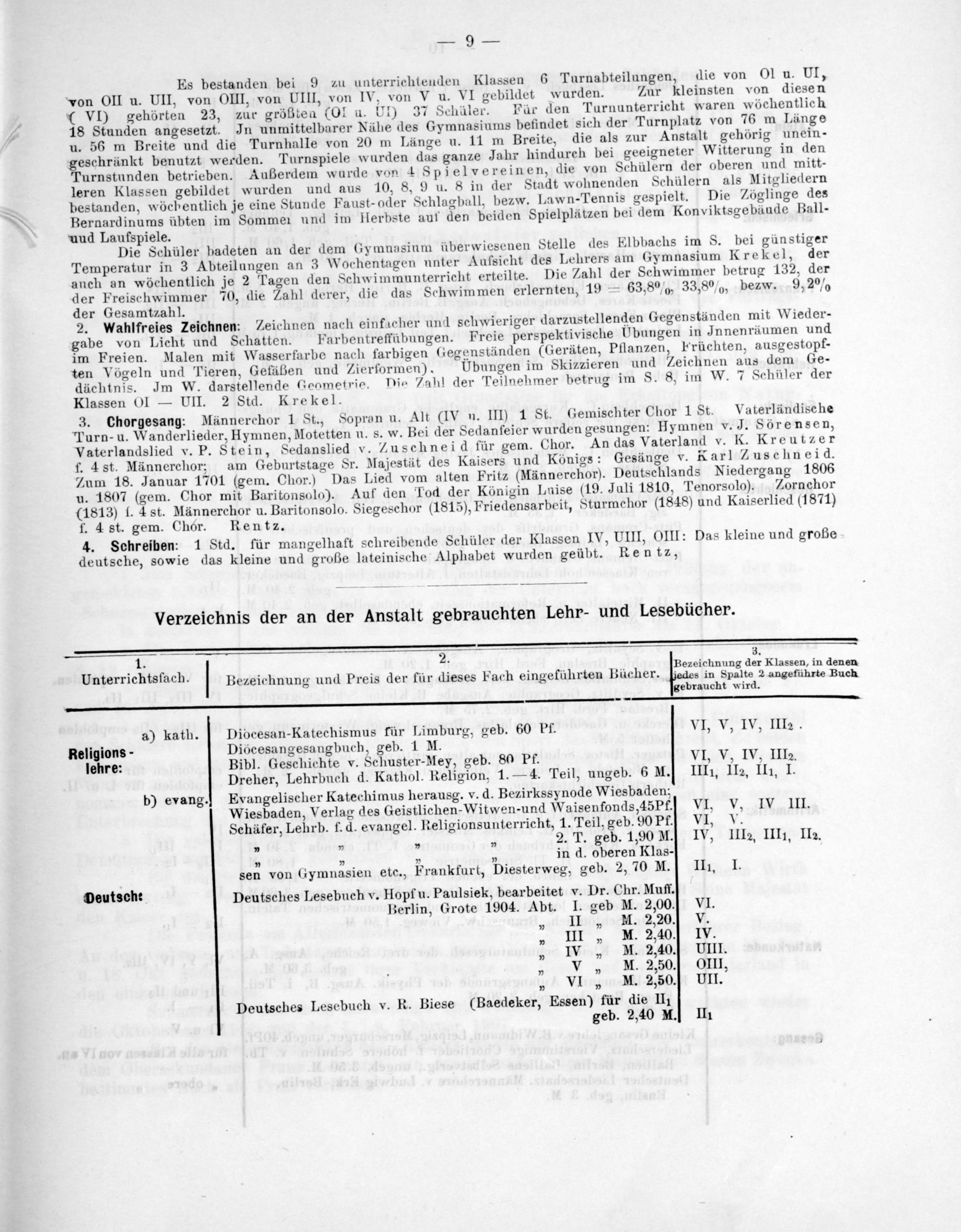 a) kath. Diocesan-Katechismus für Limburg, geb. 60 Pf. VI, V, IV, III2. Religions- Diöcesangesangbuch, geb. 1 M. lehre: Bibl. Geschichte v. Schuster-Mey, geb. 80 Pf. VI, V, IV, IIIZ.