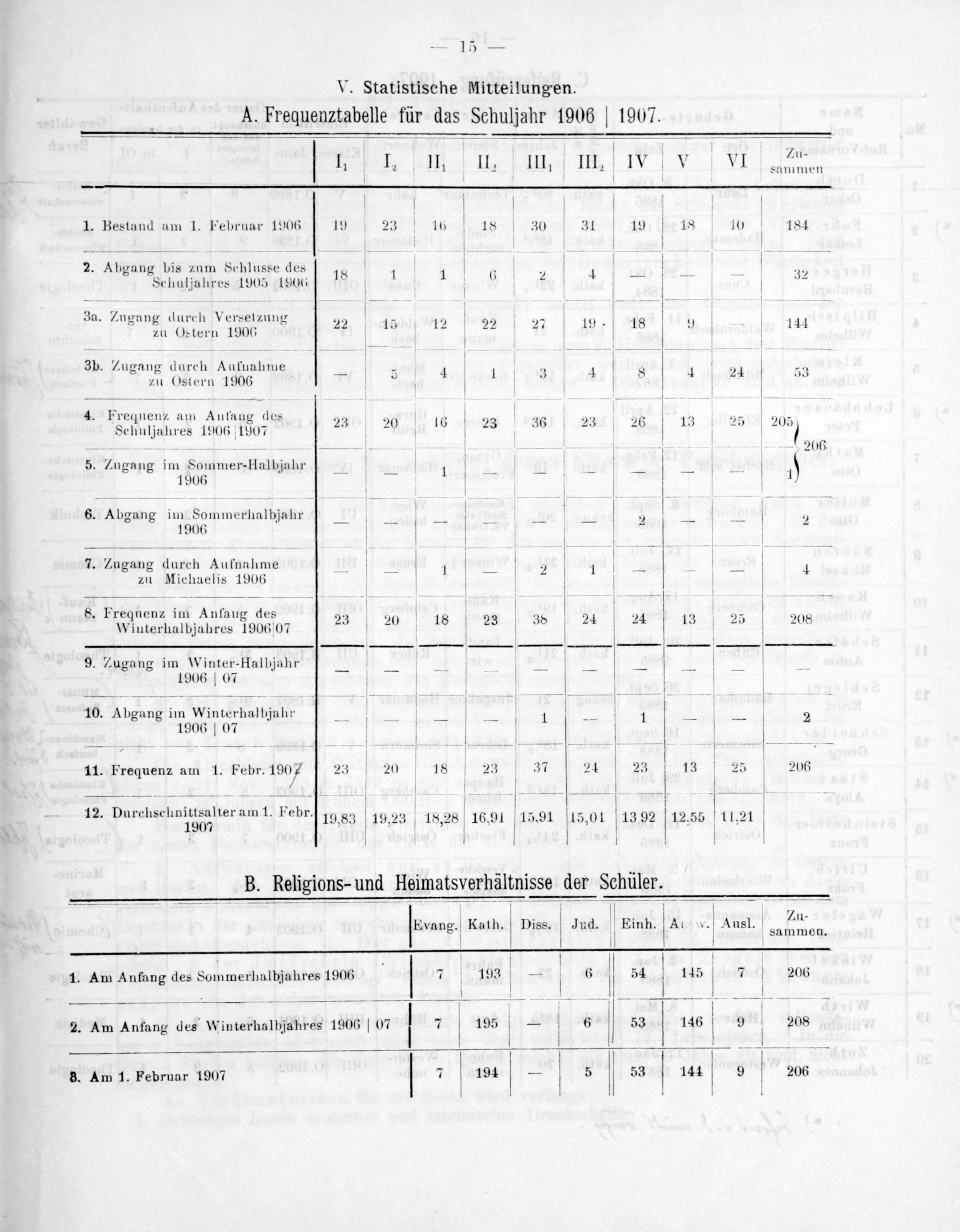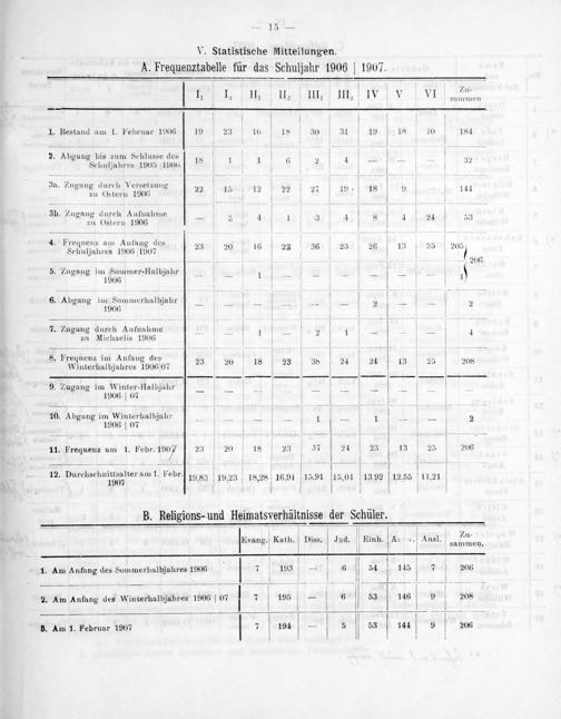 A. Frequenztabelle für das Schuljahr 1906] 1907.