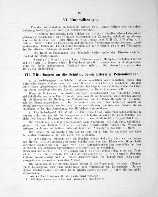 VII. Mitteilungen an die Schüler, deren Eltern u. Pensionsgeber.
