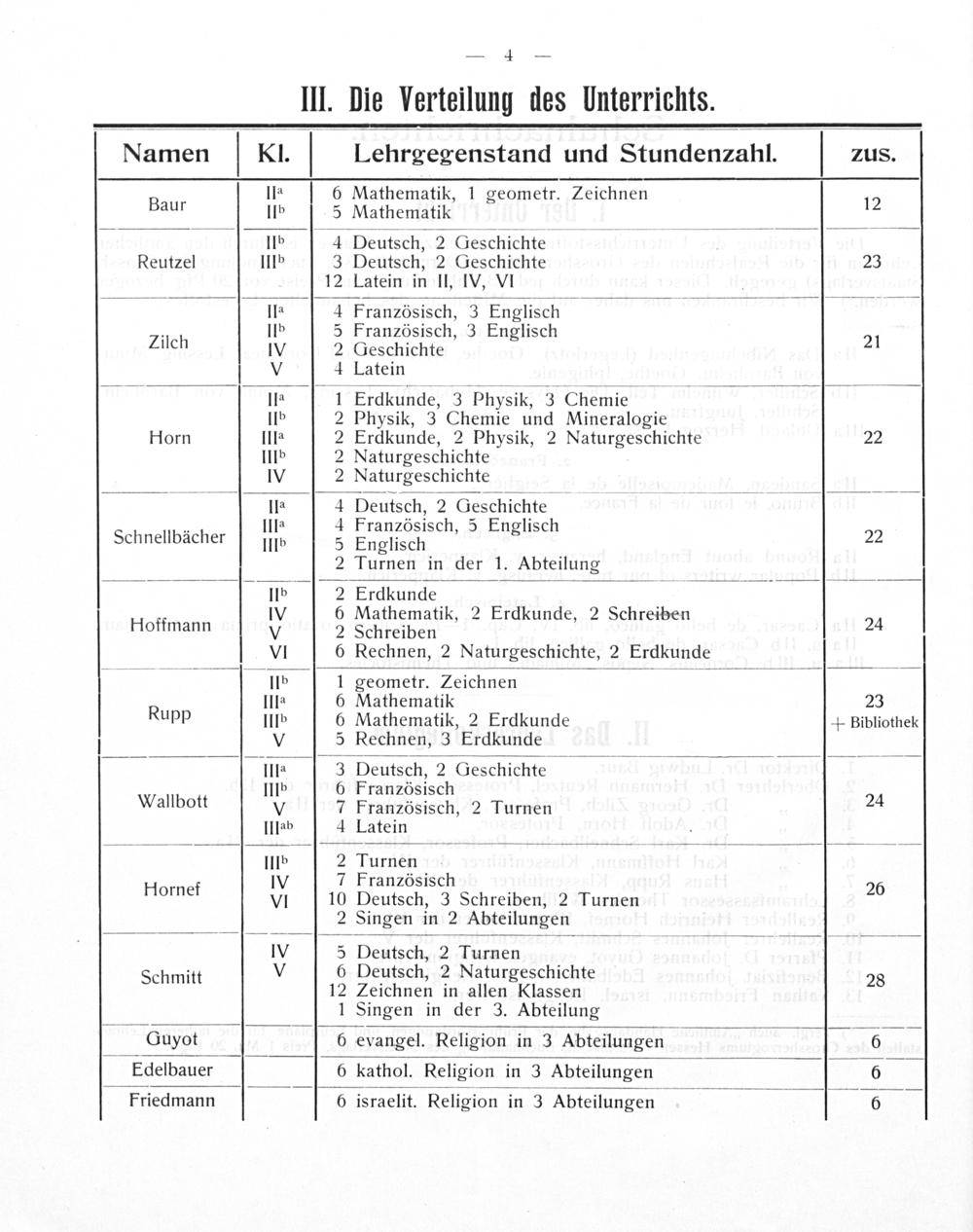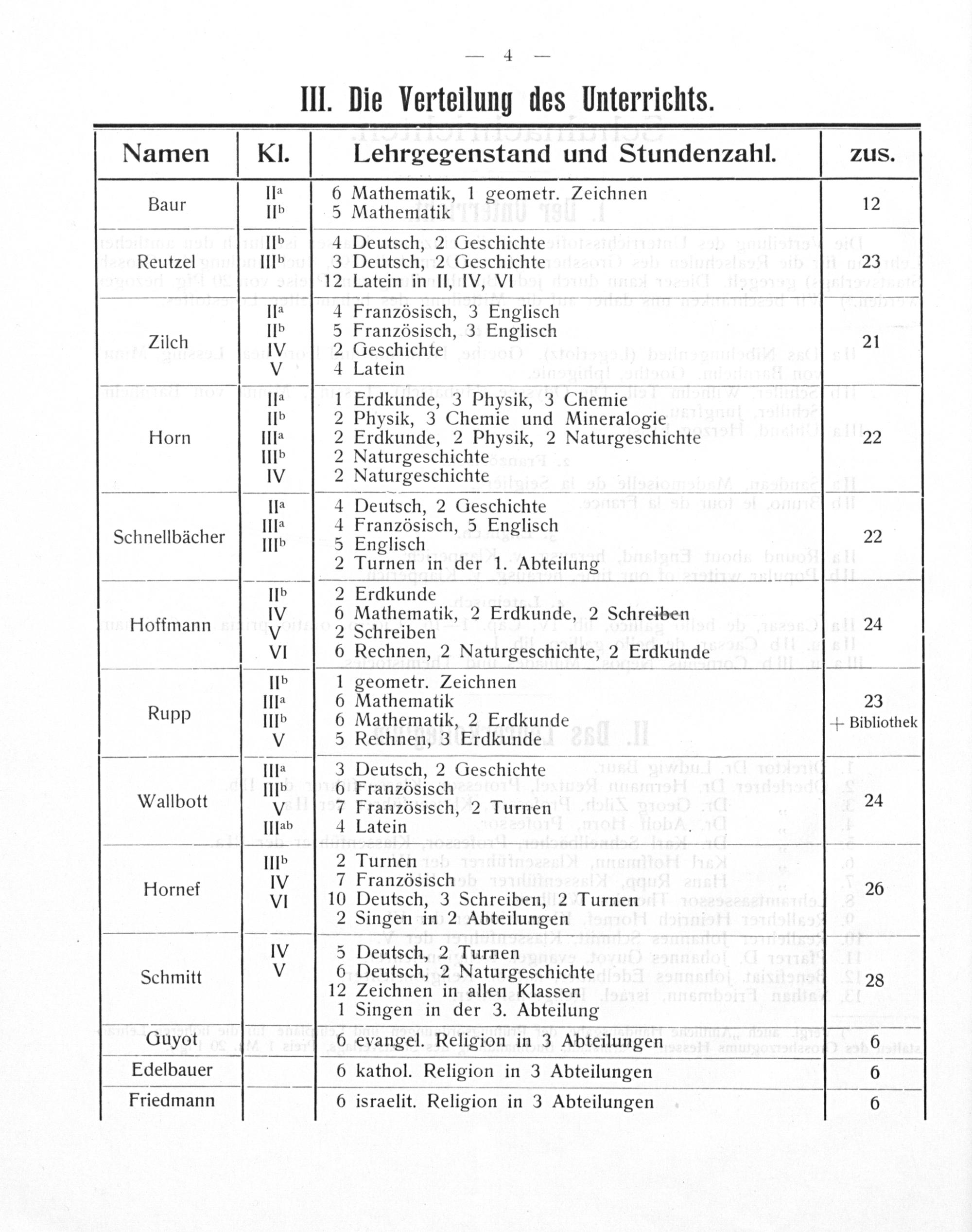 III. Die Verteilung des Unterrichts.
