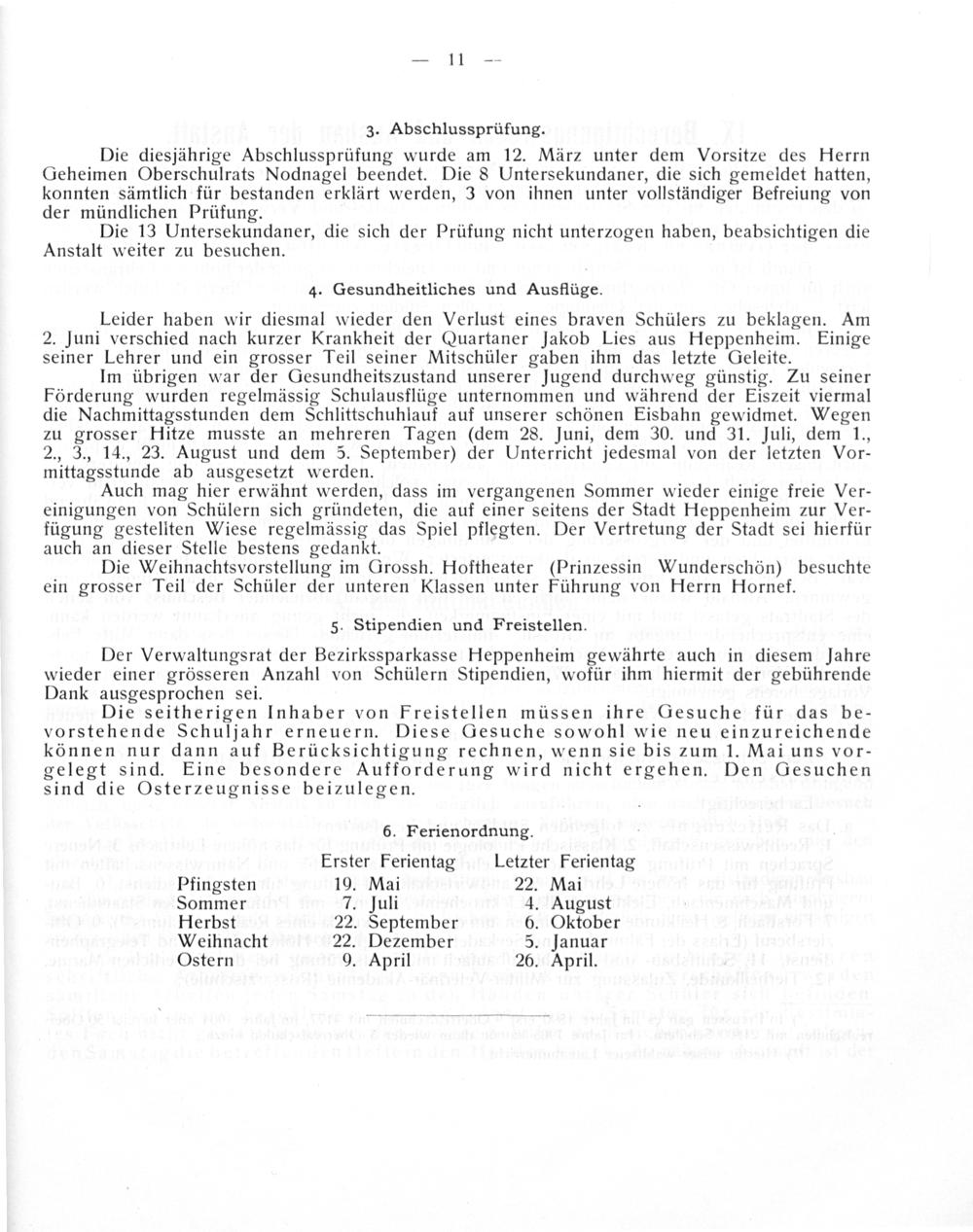 Der Verwaltungsrat der Bezirkssparkasse Heppenheim gewährte auch in diesem Jahre wieder einer grösseren Anzahl von Schülern Stipendien, wofür ihm hiermit der gebührende Dank ausgesprochen sei.