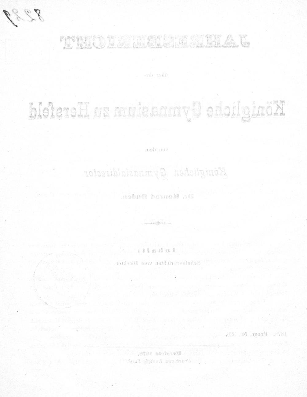 Jahresbericht über das Königliche Gymnasium zu Hersfeld