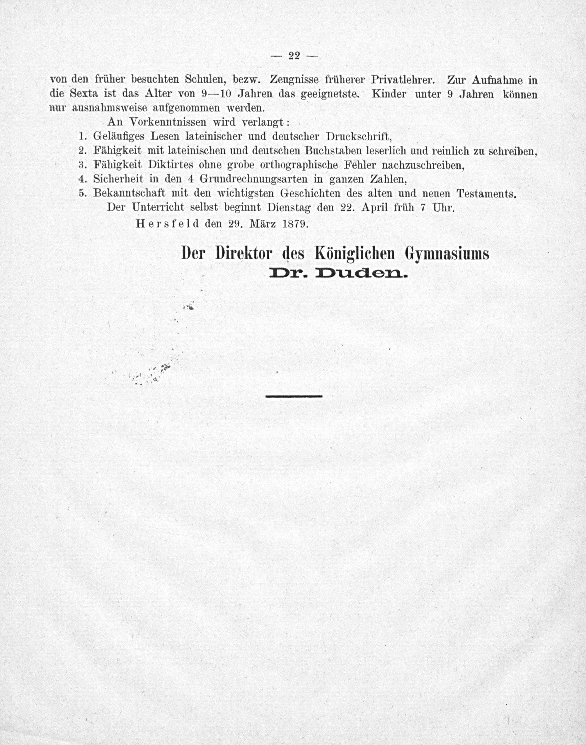Der Direktor des Königlichen Gymnasiums Dr. Duden.