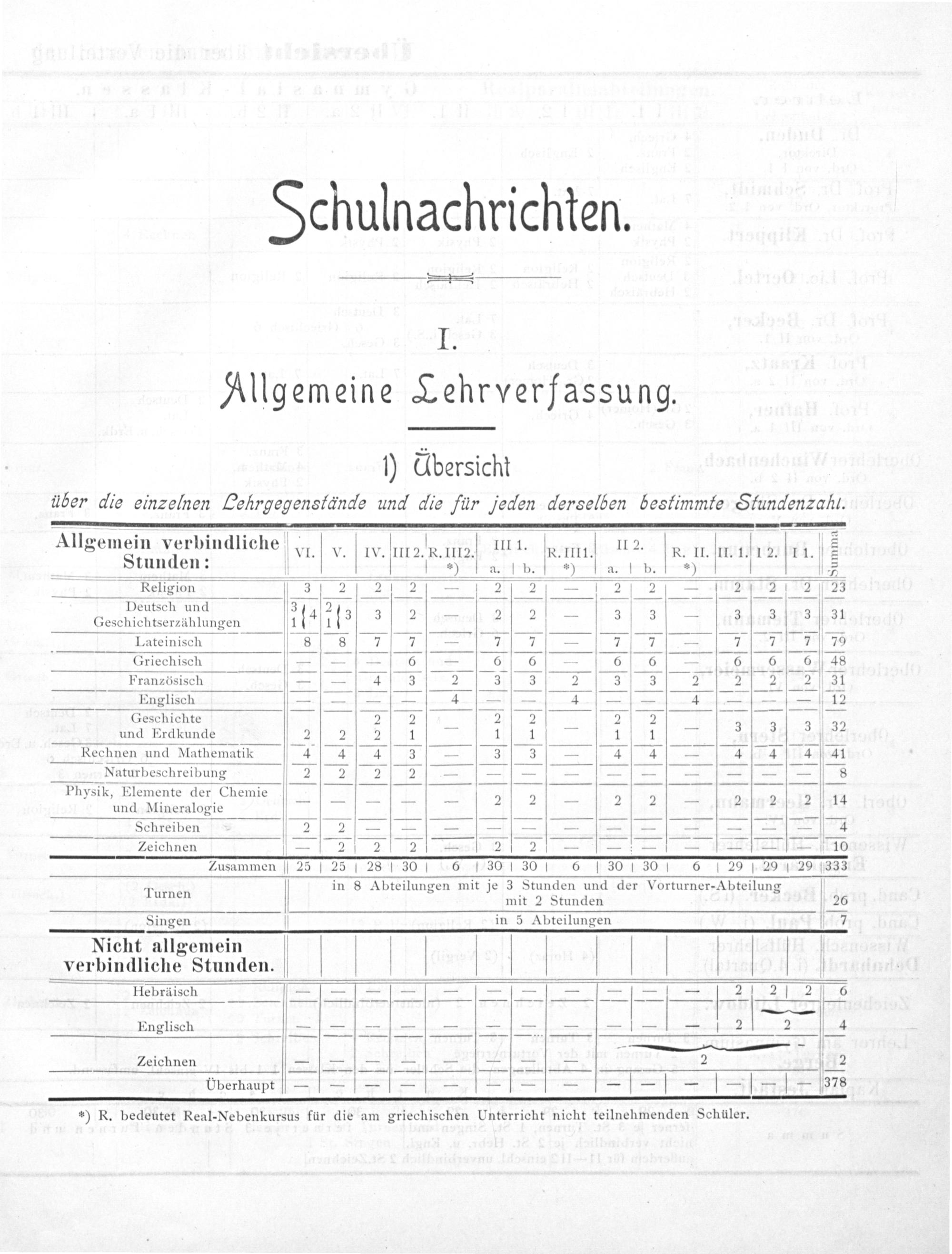 *) R. bedeutet Real-Nebenkursus für die am griechischen Unterricht nicht teilnehmenden Schüler.