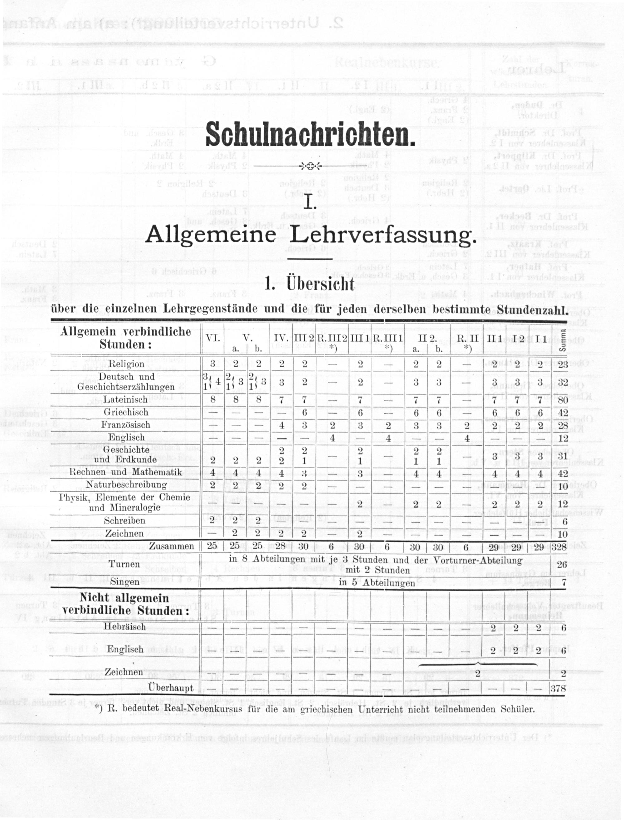 *) R. bedeutet Real-Nebenkursus für die am griechischen Unterricht nicht teilnehmenden Schüler.
