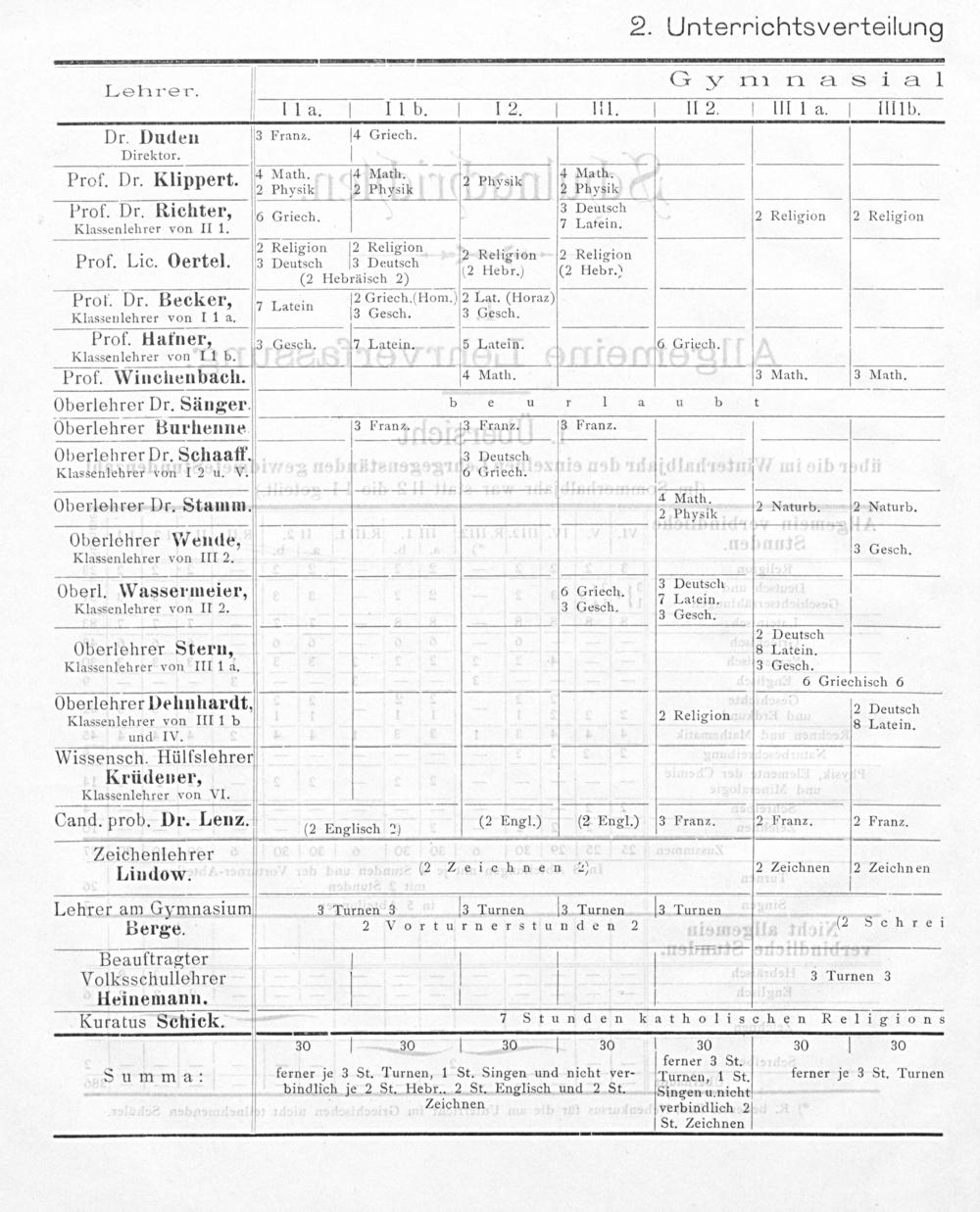 Oberlehrer Dr. Schaaff. Klassenlehrer von I 2 u. V.
