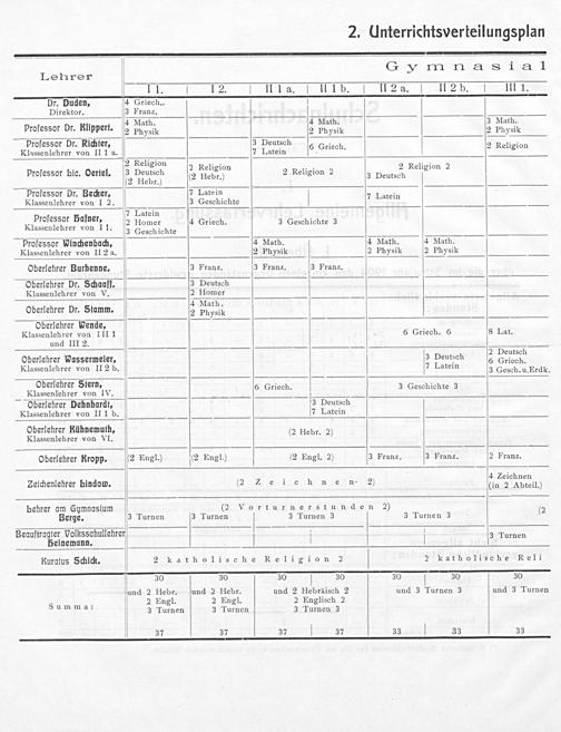 —— ſ————— G mnmnasensia2 1 Lehrer N 11 12. IIa. ſ 111 b. II 2 3. If2.b. III 1. Dr. Duden, 4 Griech.. Direktor. 3 Franz.