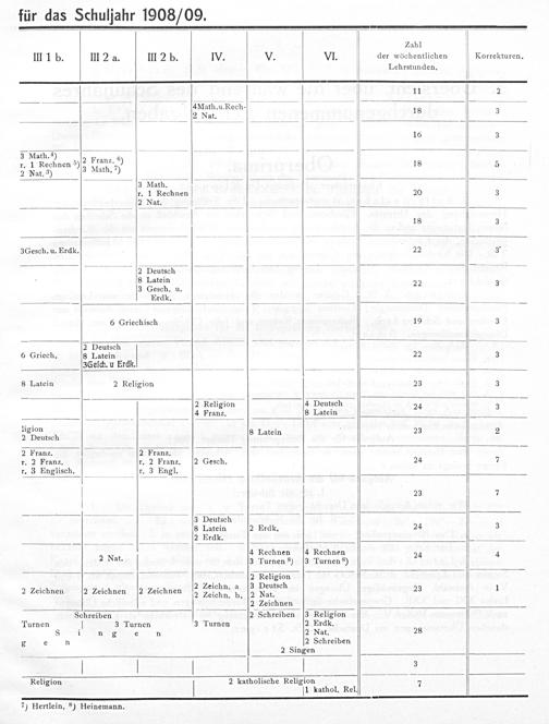 ———— Zahl III 1 b. III 2 a. III 2 b. IV. V. VI. der wöchentlichen Korrekturen. Lehrstunden. I 11 2 8 4 Math. u. Rech- 4 2 Nat. 18 3 16 3 3 NI A-n)——— 8 2 Franz. 6) r. 1 Rechnen 5⁵). 18 5 2 Nat.) 3 Math.) 3 Math. r. 1 Rechnen 20 3 — 2 Nat. 18 3 3 Gesch. u. Erdk. 22 3* 2 Deutsch 1— 1 81 8 Latein 3 Gesch. u. 22 3 — Erdk. 6 Griechisch 19 3 — 2 Deutsch 5 J 6 Griech. 8 Latein 22 3 3Geſch. u Erdk. 1 1 8 Latein 2 Religion 23 3 88— 2 Religion 4 Deutsch 24 3 .. 4 Franz. 8 Latein ligion. 2 Deutsch 8 Lalein 23 2 2 Franz. 141 Franz. RSZZZj r. 2 Franz. r. 2 Franz.[2 Gesch. 24 7 r. 3 Englisch. r. 3 Engl. 23 7 j 3 Deutsch 8 Latein 2 Erdk. 24 3 2 Erdk. 4 Rechnen 4 Rechnen 2 Nat. 3 Turnen 8) 3 Turnen ⁸) 24 4 2 Religion z:. 1 2 LZeichn. a 3 Deutsch 2 2 Zeichnen 2 Zeichnen 2 Zeichnen 2 Zeichn. b.[2 Nat. 23 1 2 Zeichnen Schreiben 2 Schreiben 3 Religion Turnen 3 Turnen 3 Turnen 2 Erdk. i n/ g e n 2 Nat. 28 g e n 2 Schreiben — 2 Singen V V 4 Religion 7