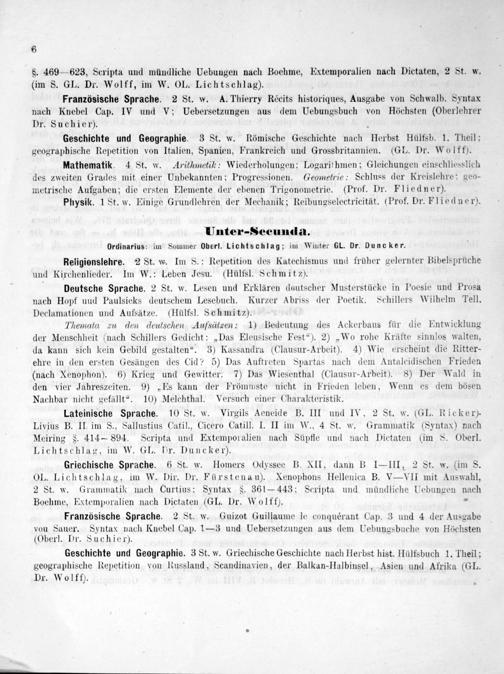 Unter-Secunda. Ordinarius: im Sommer Oberl. Lichtschlag; im Winter 61L. Dr. Duncker.