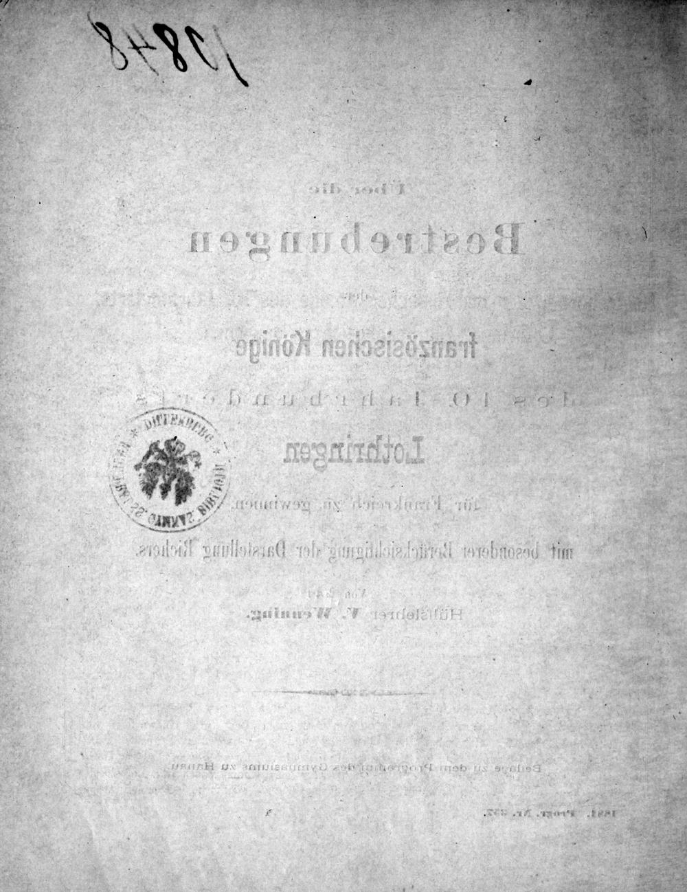 Kurze Übersicht über die Geschichte der Bibliothek des Königlichen Gymnasiums zu Hanau und Verzeichnis der alten Drucke derselben bis zur Mitte des 16. Jahrhunderts