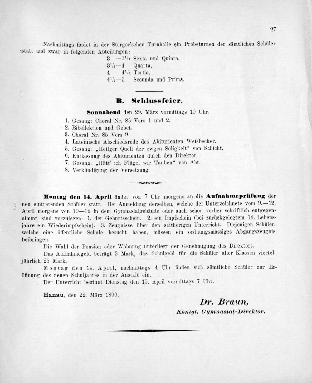 Hanau, den 22. März 1890. Dr. Braun,