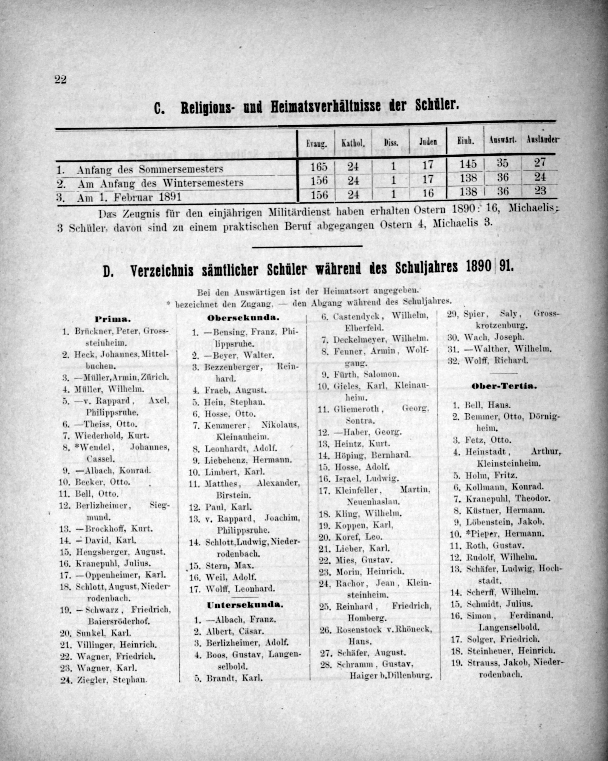 C. Religions- und Heimatsverhältnisse der Schüler.