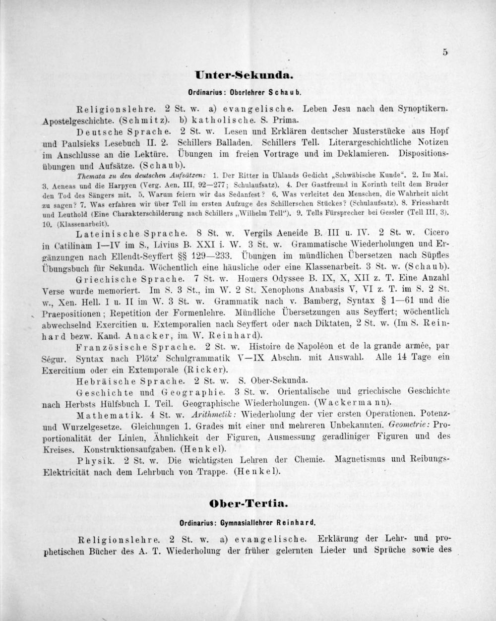 Unter-Sekunda. Ordinarius: Oberlehrer Schaub.