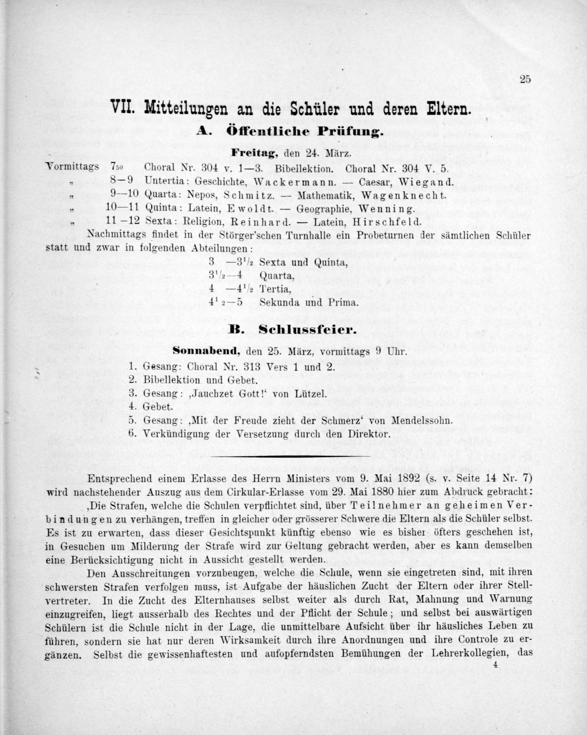 VII. Mitteilungen an die Schüler und deren Eltern. A. öffentliche Prüfung.