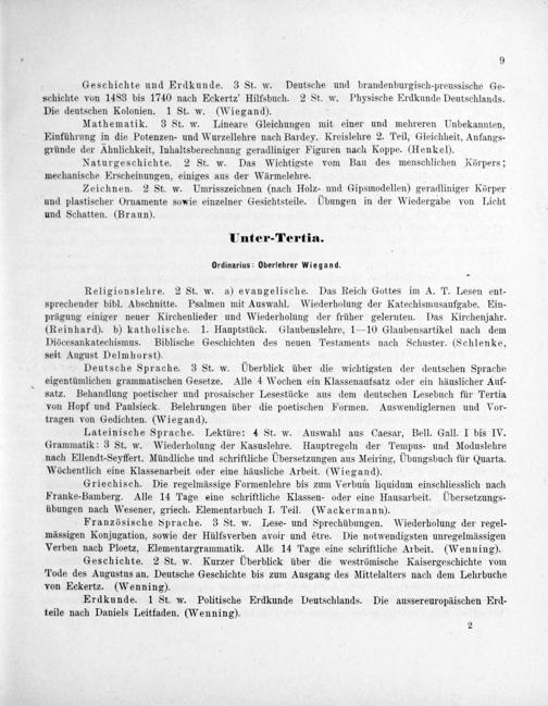 Ordinarius: Oberlehrer Wiegand.