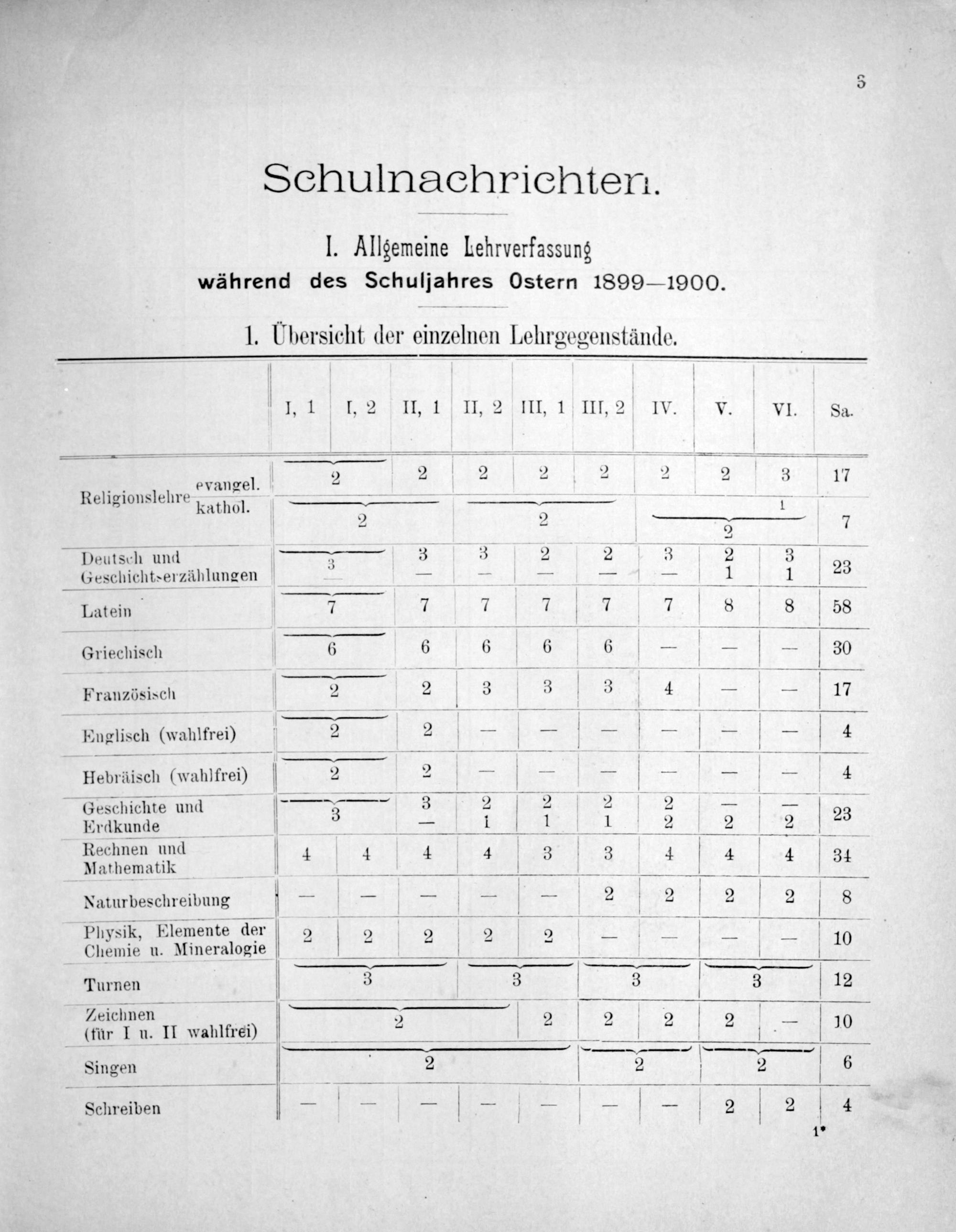 1. Ubersicht der einzelnen Lehrgegenstände.